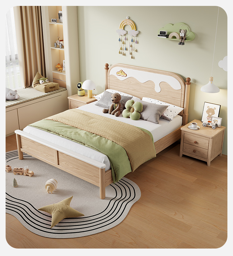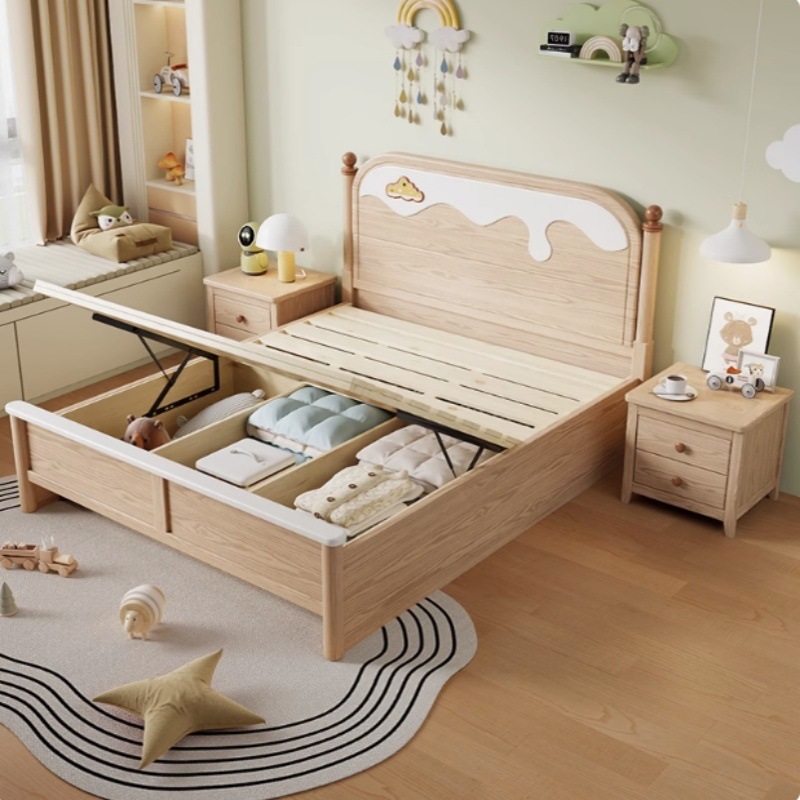아스파라거스 청소년 전체 단단한 나무 어린이 침대 홈 1.2/1.35/1.5 현대 간단한 소년 저장 소녀