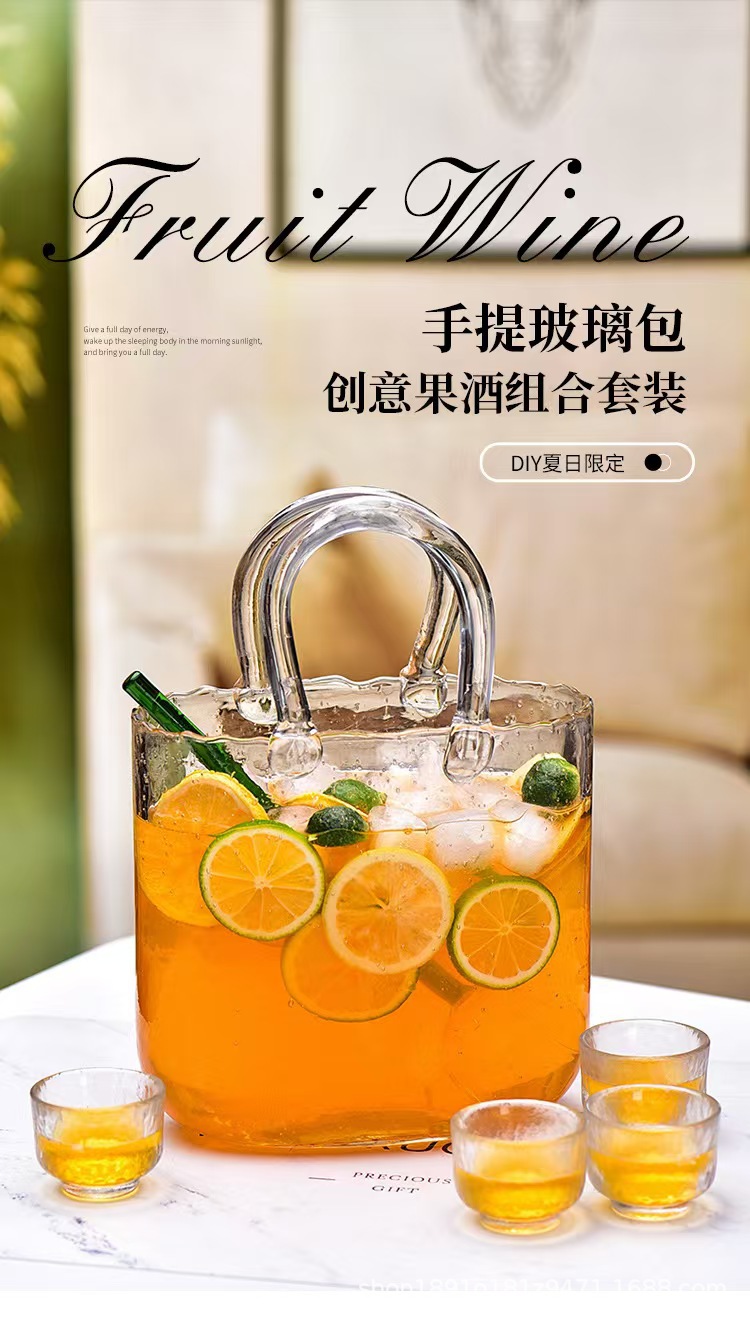 창의적인 고급 휴대용 유리 가방, 와인 및 음료, 대용량 주스 용기, 케이터링, 살짝 취한 과일 와인 컵 세트스토어 가기