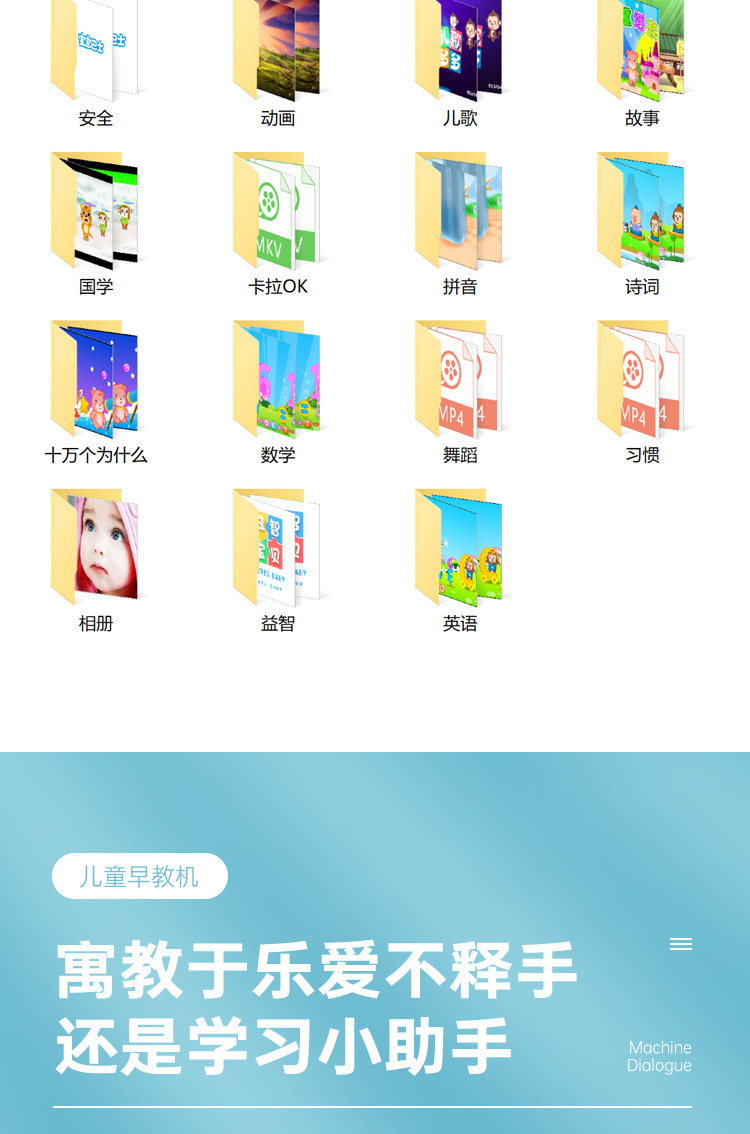 새로운 어린이 다기능 애니메이션 비디오 조기 교육 기계 낙하 방지 눈 보호 아기 계몽 학습 기계 음악 이야기 기계