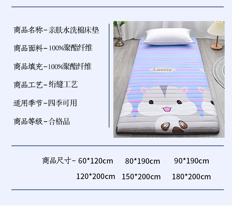 • 90x190cm [기숙사 전용] 오랫동안 자도 무너지지 않고 통기성이 좋으며 미끄러지지 않음