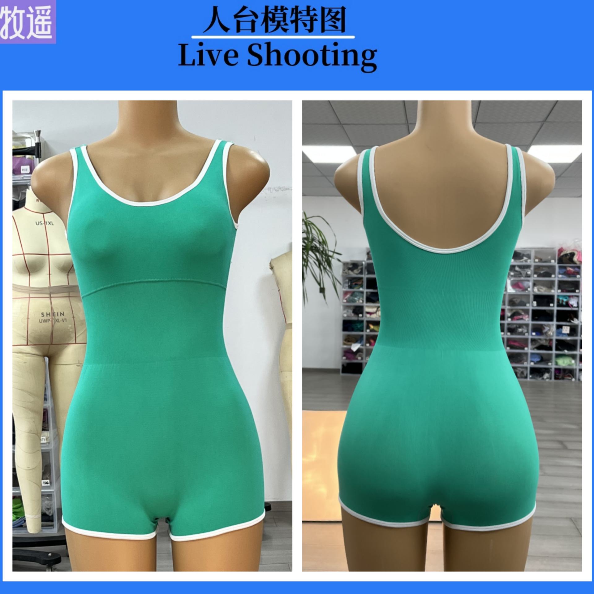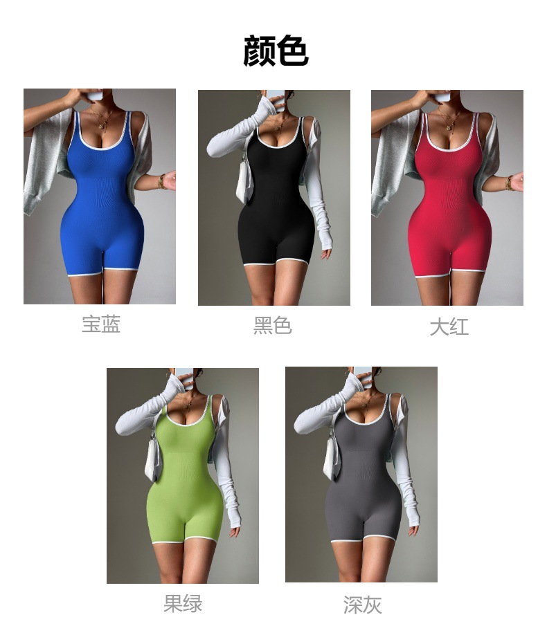 국경을 넘나드는 대비 색상의 섹시한 U 백 요가복 점프수트 반바지, 가슴 패드, 허리 조절 조끼, 스포츠 피트니스 점프수트스토어 가기