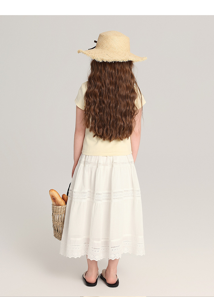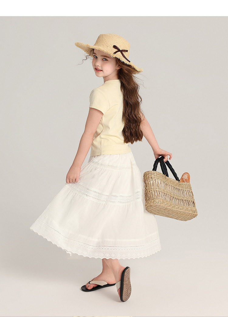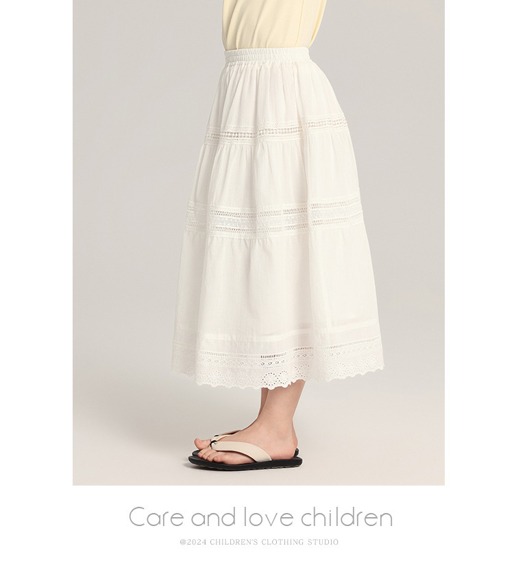 푸딩 하루 아동복 소녀 문학 스타일 스커트 2025 여름 신작 어린이 달콤하고 세련된 흰색 스커트스토어 가기