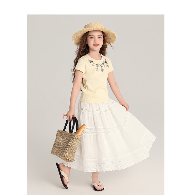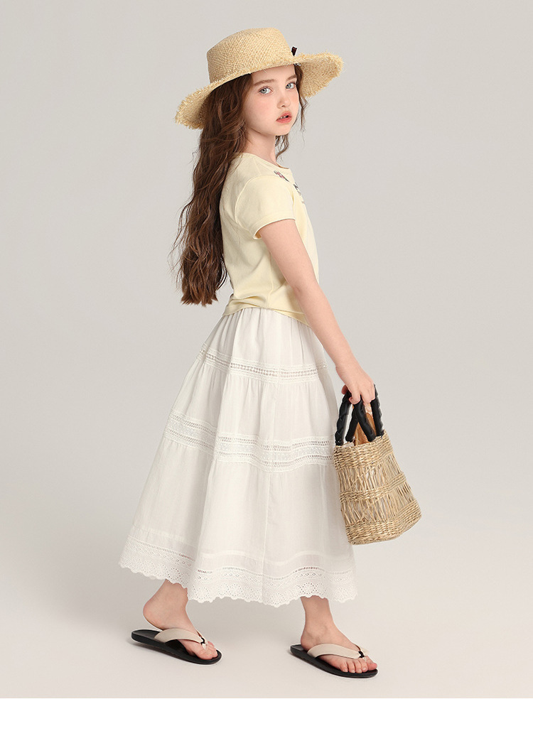 푸딩 하루 아동복 소녀 문학 스타일 스커트 2025 여름 신작 어린이 달콤하고 세련된 흰색 스커트