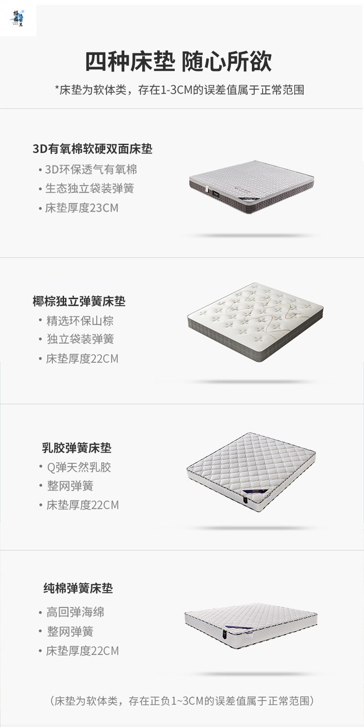 • 침대 + 침대 옆 탁자 1개 + 코코넛 야자나무 독립 스프링 매트리스