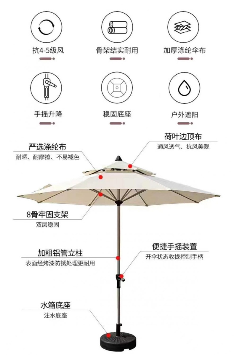이중 파라솔, 야외 안뜰 우산, 우산 세트가 있는 테이블과 의자, 발코니, 마당 리프팅, 야외 캠핑, 철제