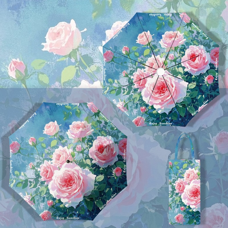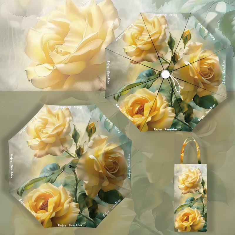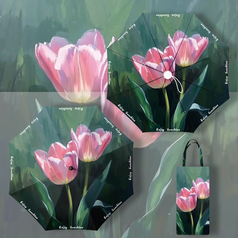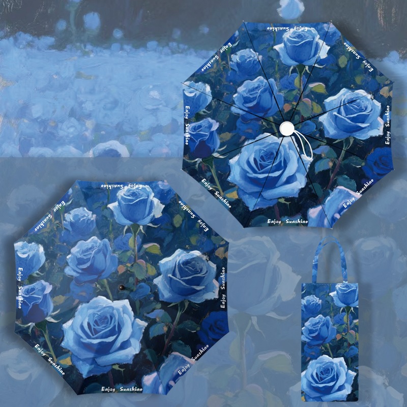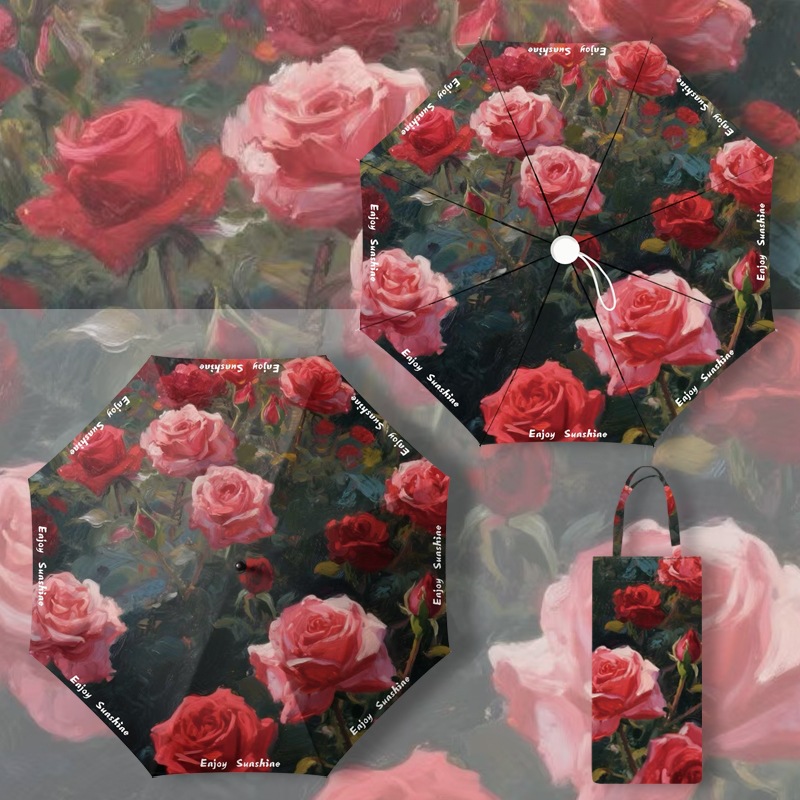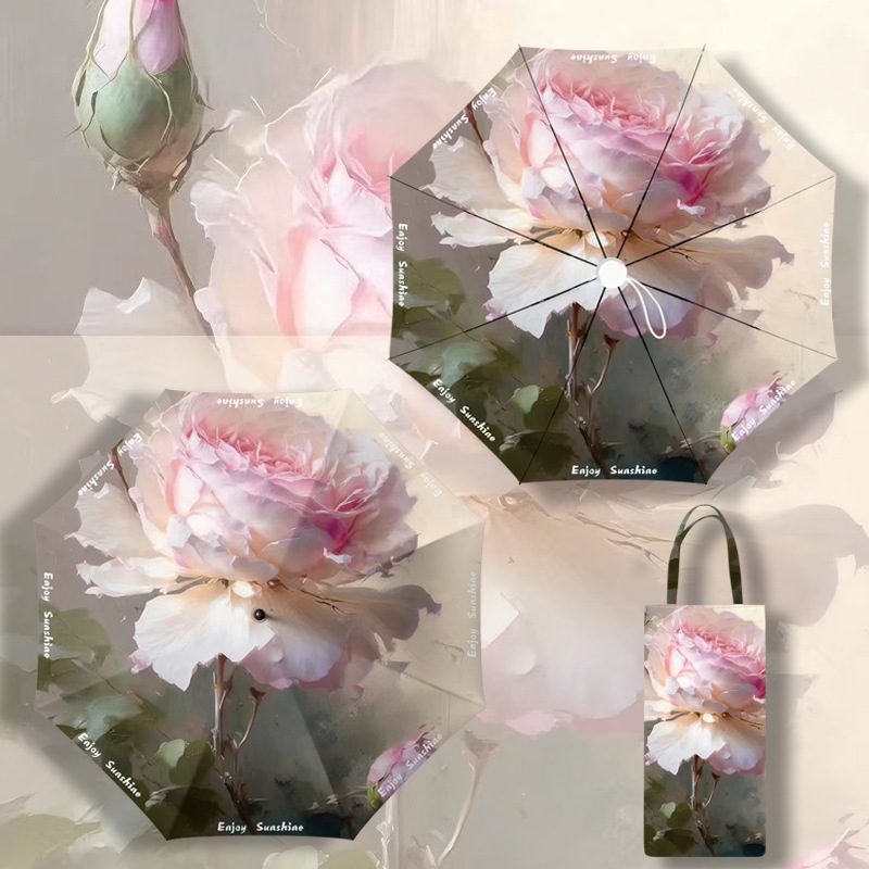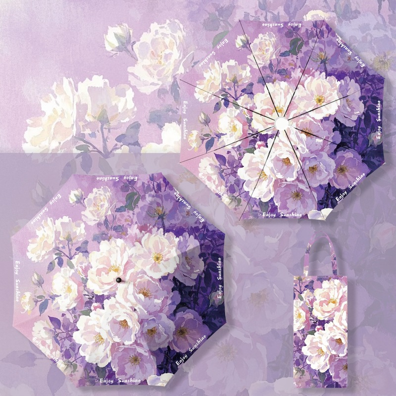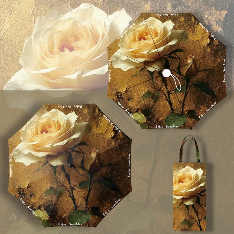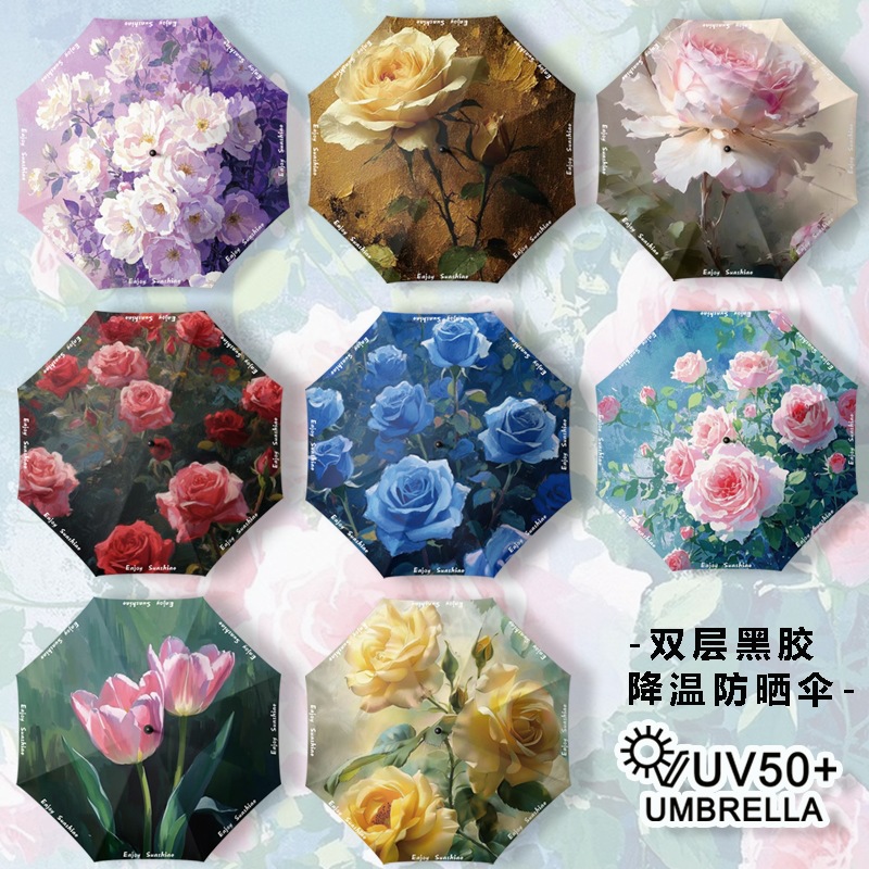이중층 유화풍 여성용 양산, 햇빛 차단 및 자외선 차단 기능이 있는 접이식 수동 우산, 중국풍스토어 가기