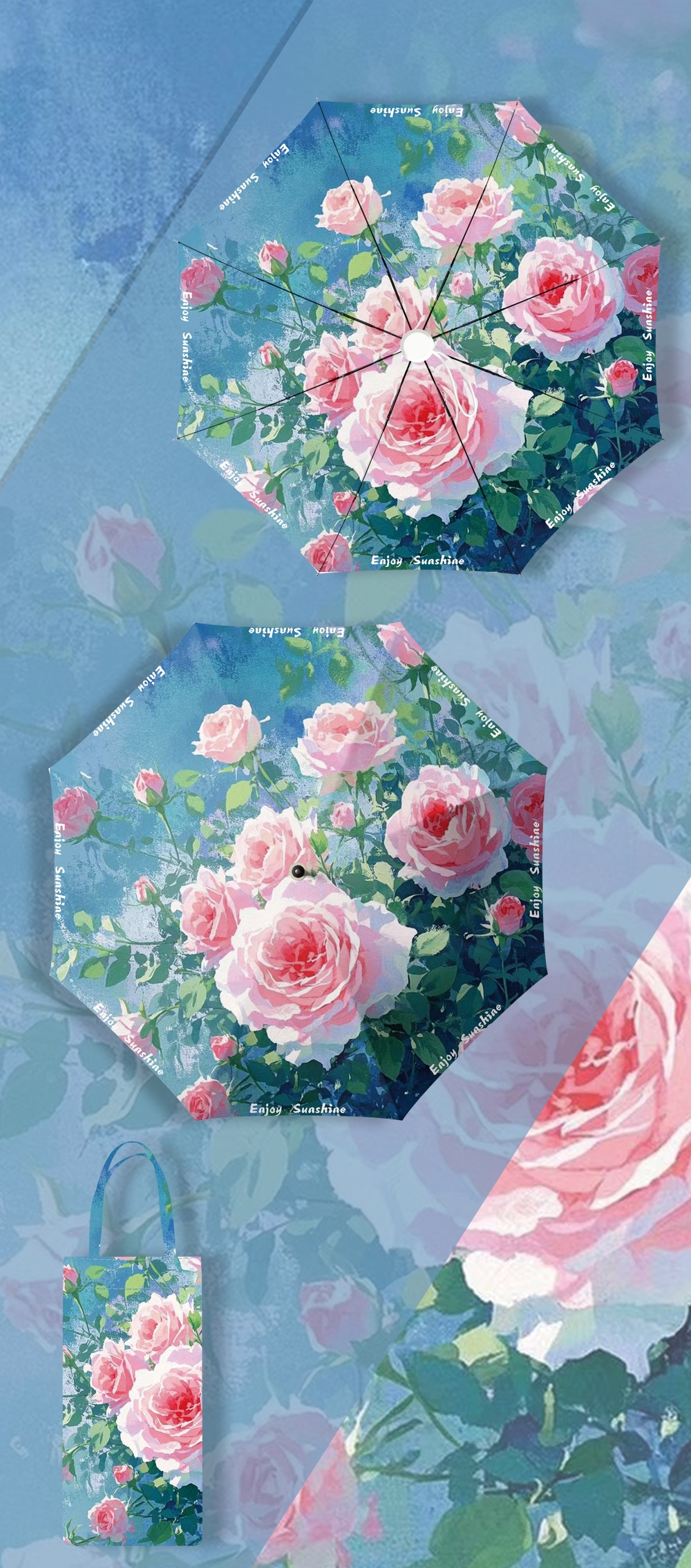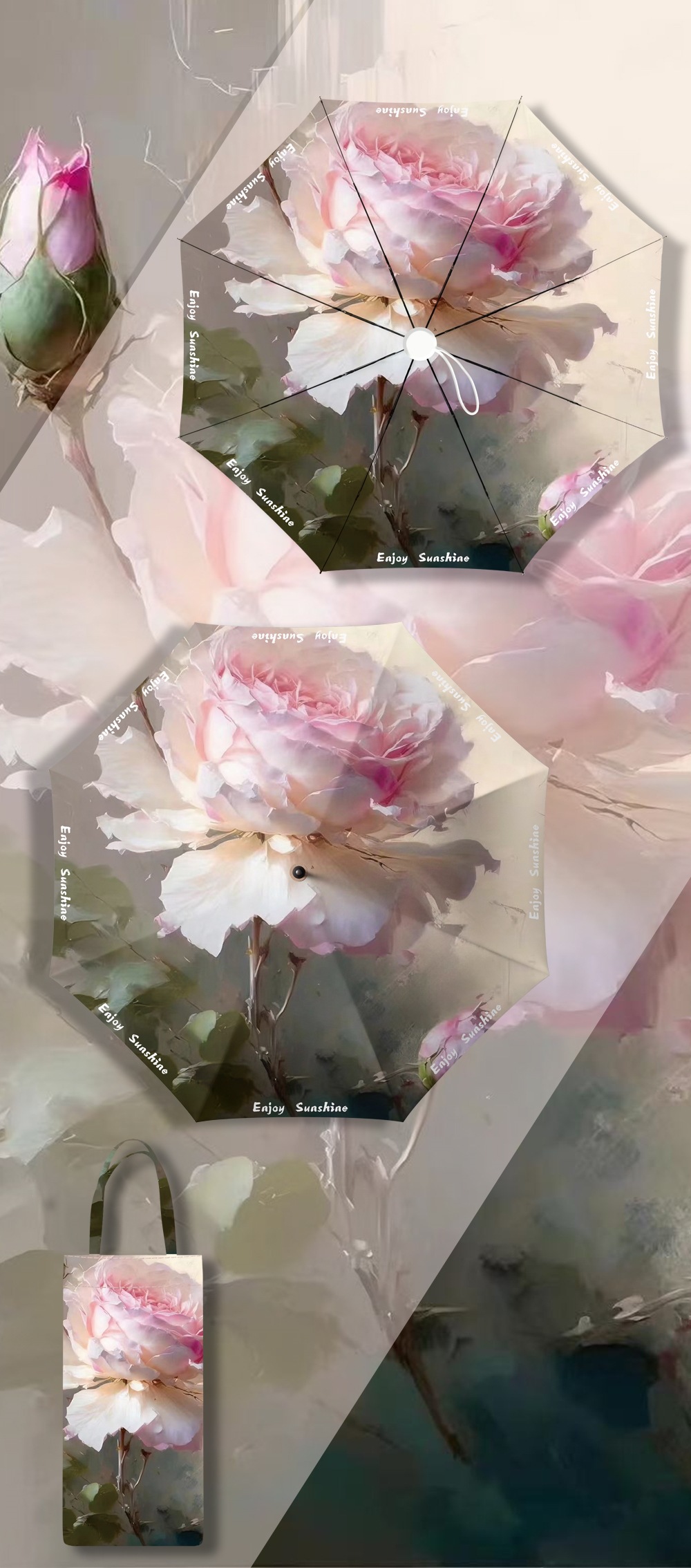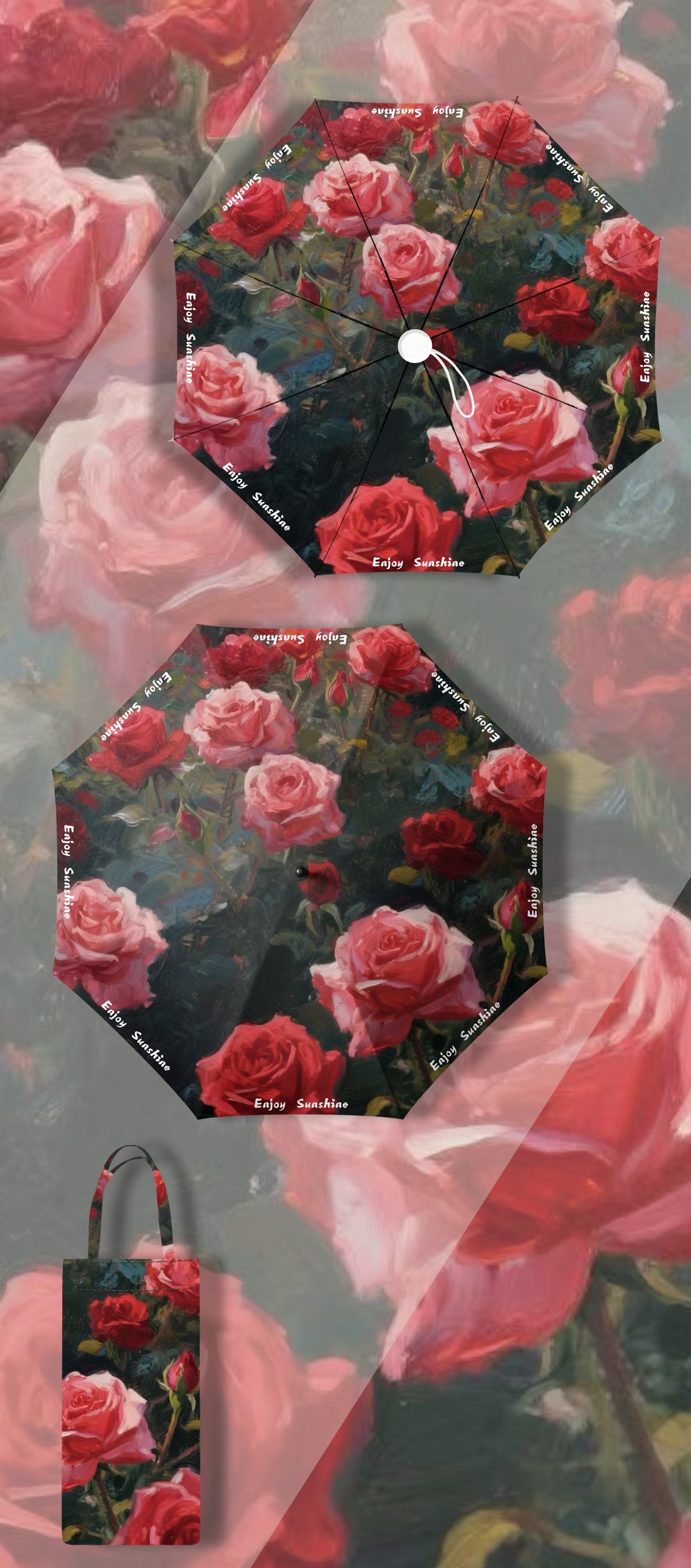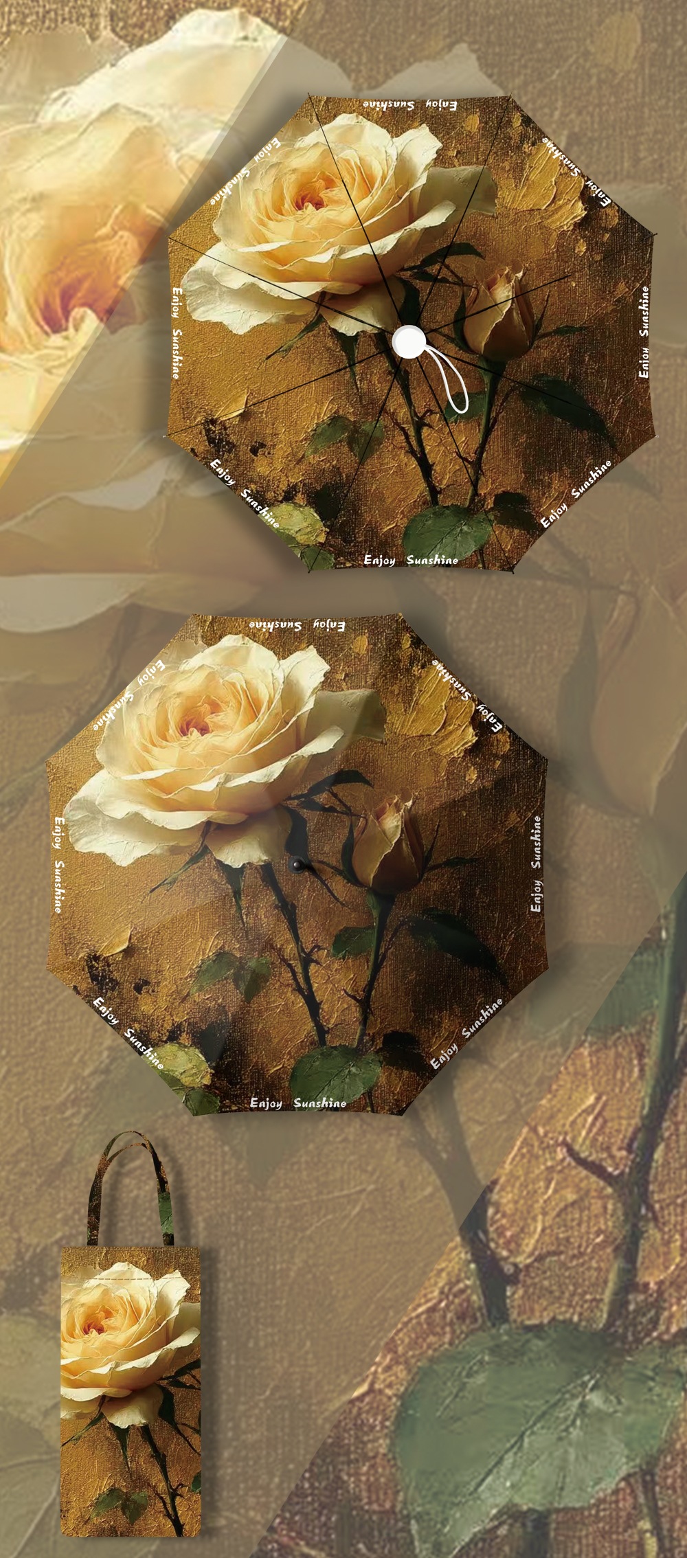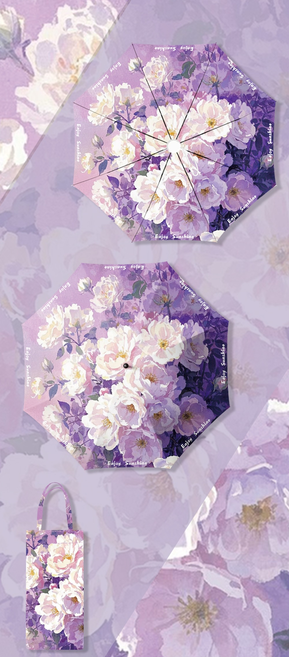 이중층 유화풍 여성용 양산, 햇빛 차단 및 자외선 차단 기능이 있는 접이식 수동 우산, 중국풍스토어 가기