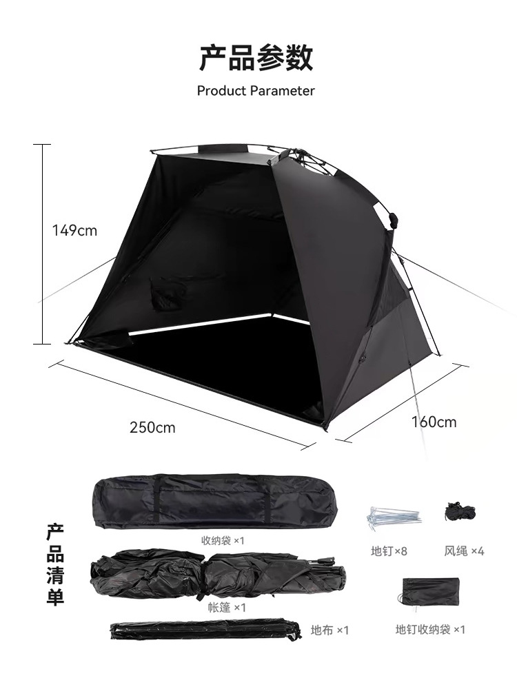 영화 촬영용 블랙 글로시 차양 텐트, 야외 여행 낚시 접이식 자외선 차단 캠핑 텐트, 사계절 사용 가능 휴대용스토어 가기