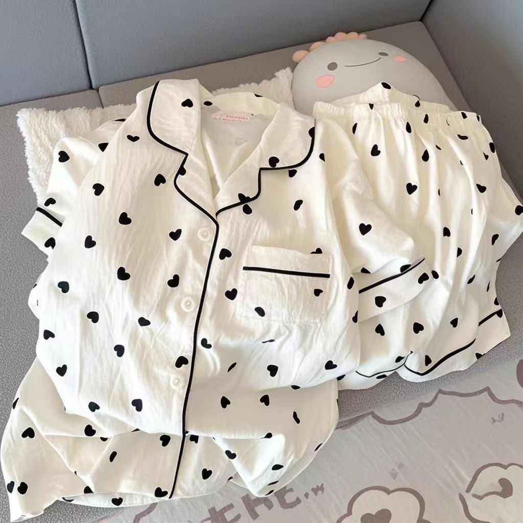 2025 새로운 클라우드 코튼 거즈 느낌 여름 잠옷 여성 반바지 투피스 세트 스위트 홈웨어 외부 착용 가능