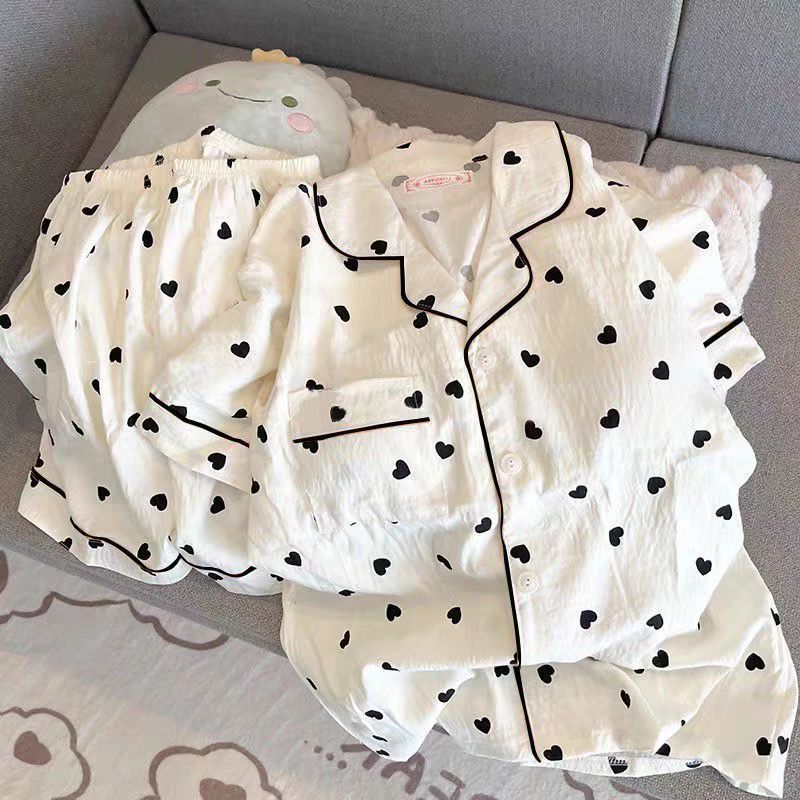 2025 새로운 클라우드 코튼 거즈 느낌 여름 잠옷 여성 반바지 투피스 세트 스위트 홈웨어 외부 착용 가능스토어 가기