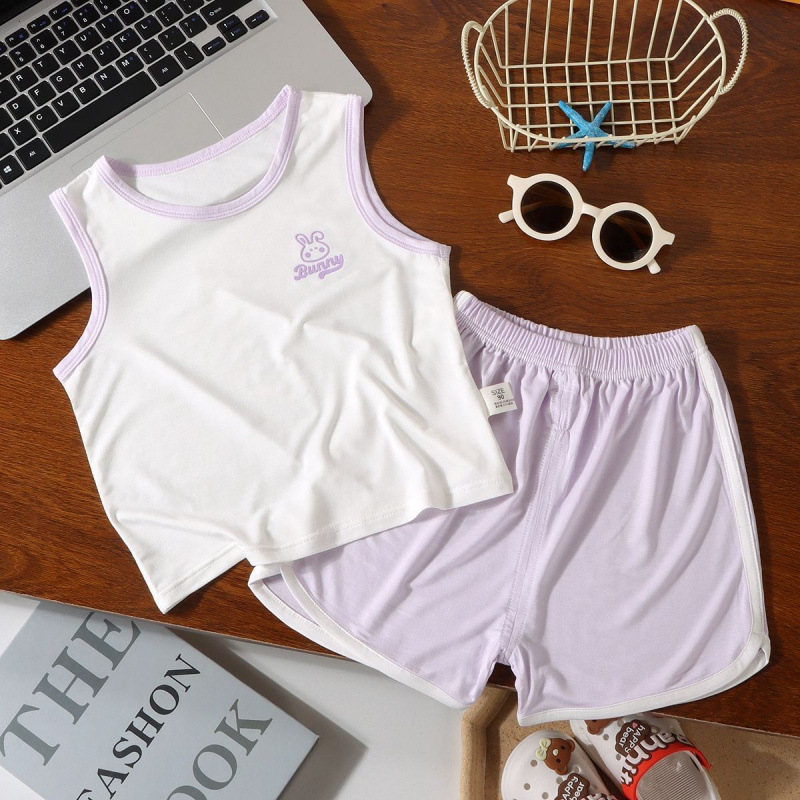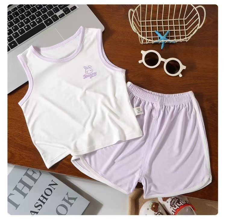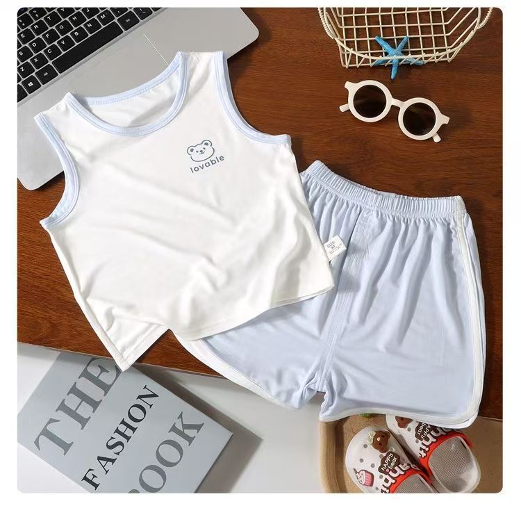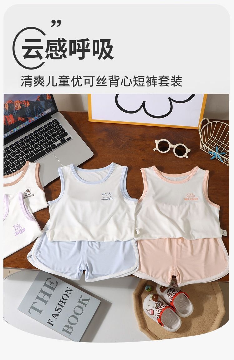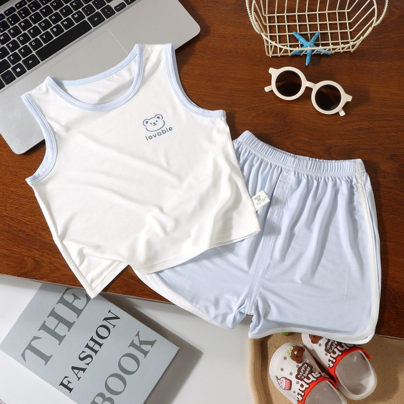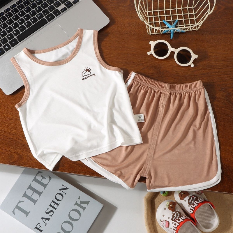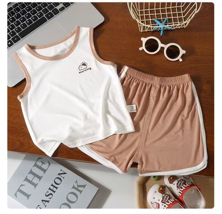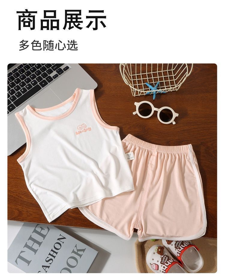 아동용 조끼 여름 모달 정장 소년 소녀 잠옷 가정복 민소매 아기 반바지 에어컨 투피스 세트스토어 가기