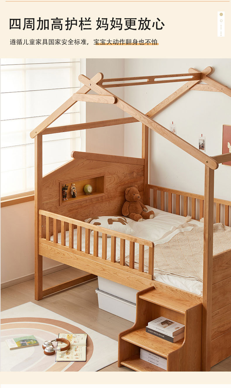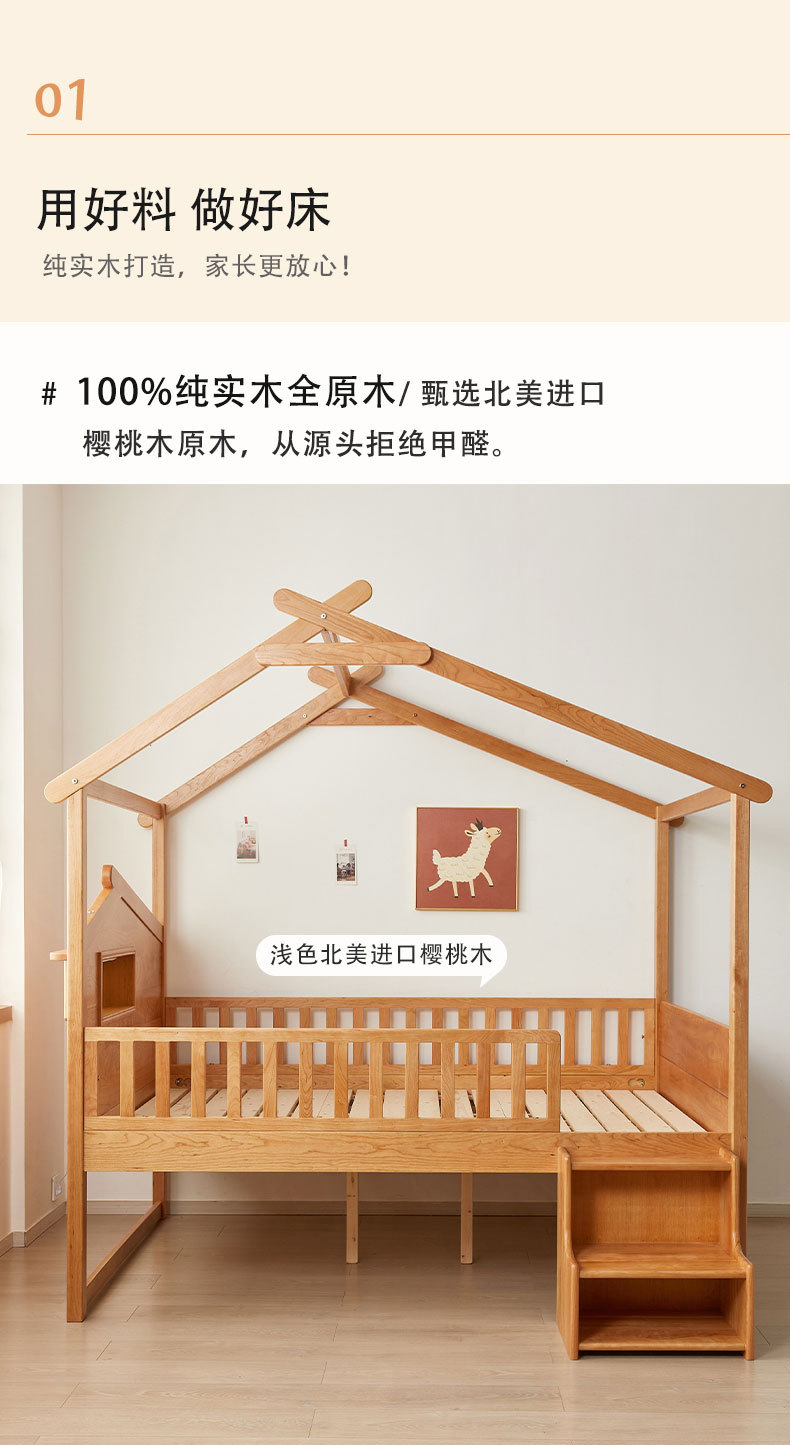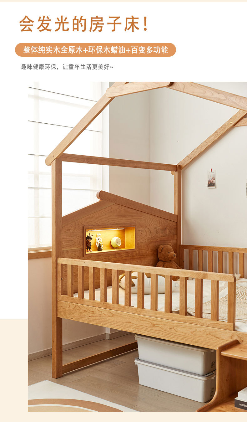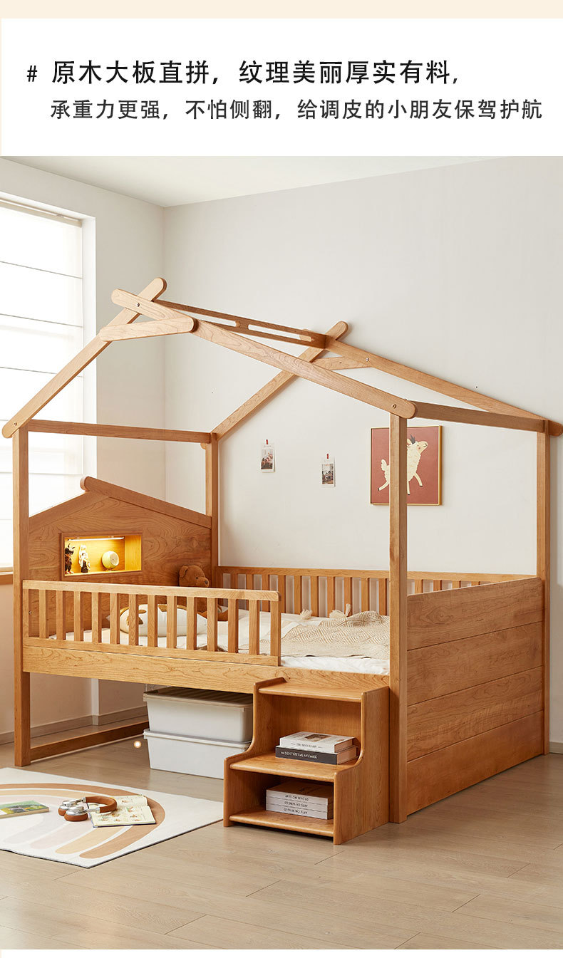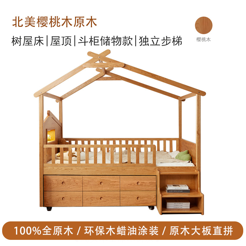 수납서랍, 조명이 있는 어린이 침대 가드레일, 몬테소리 어린이 침대, 무도색 통나무 트리하우스 침대, 순수 원목 어린이 침대스토어 가기