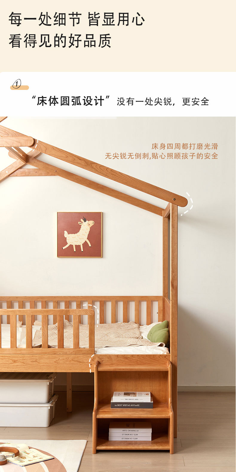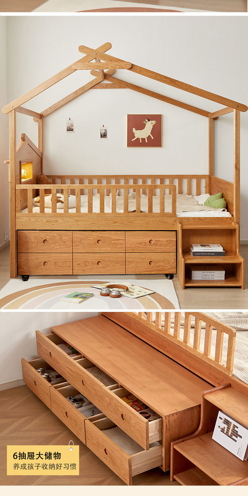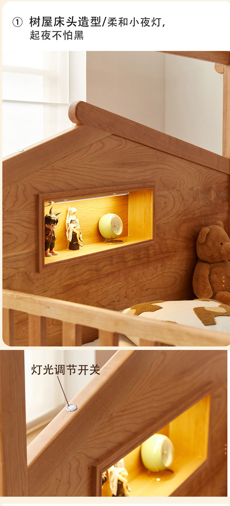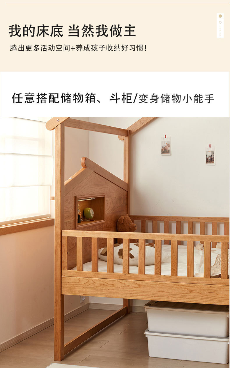 수납서랍, 조명이 있는 어린이 침대 가드레일, 몬테소리 어린이 침대, 무도색 통나무 트리하우스 침대, 순수 원목 어린이 침대스토어 가기