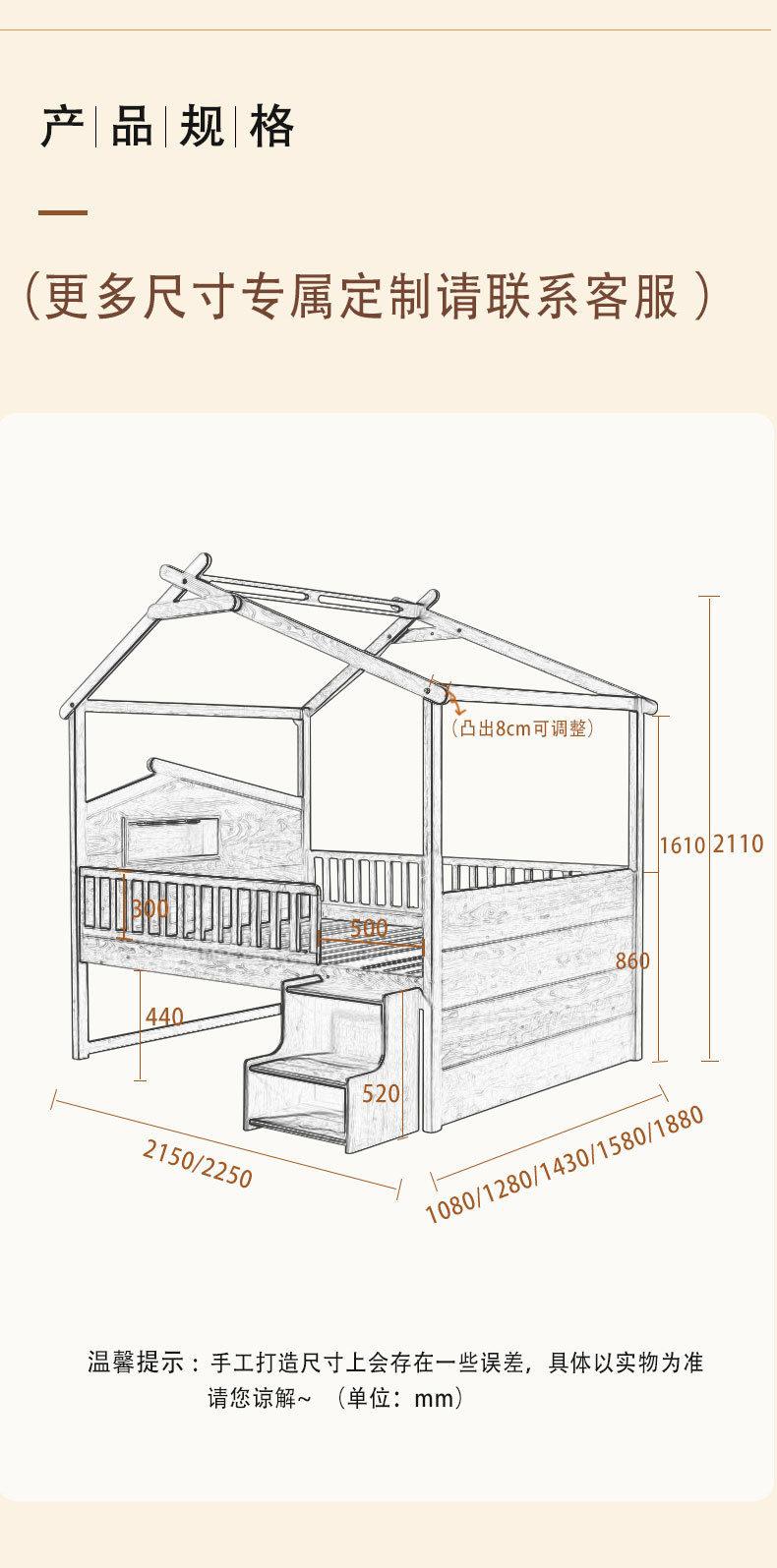 • [지붕이 있는 침대 + 서랍장 + 사다리 스툴] 1350*2000