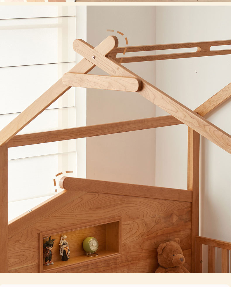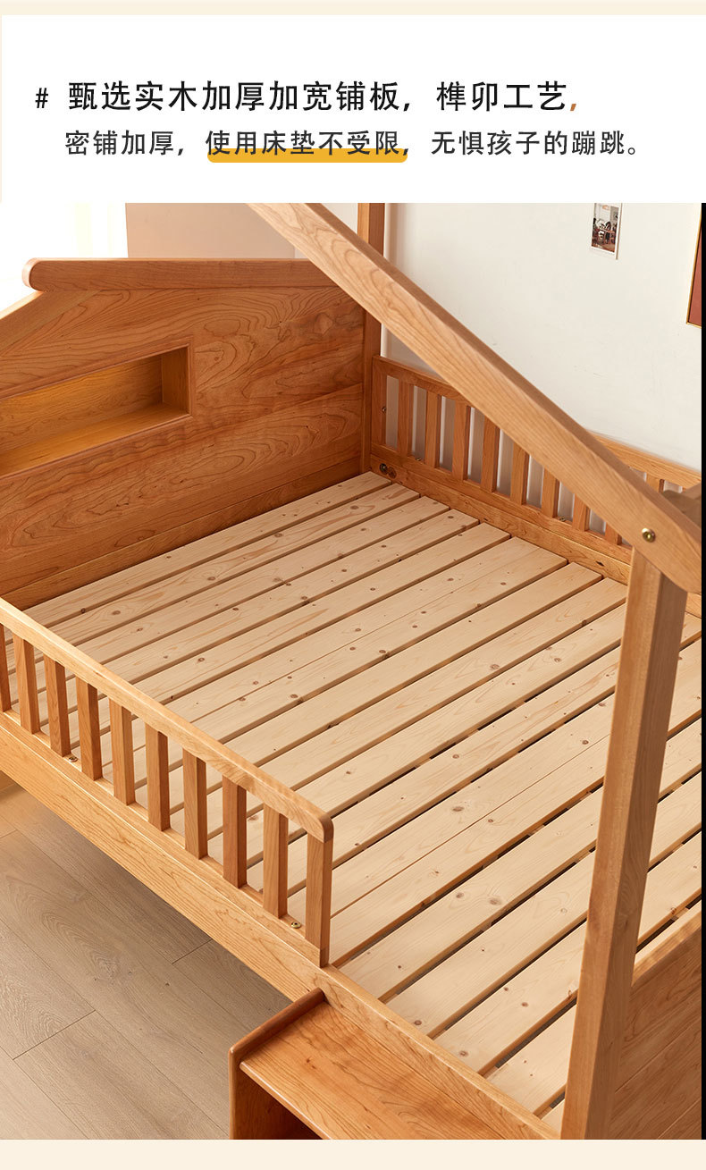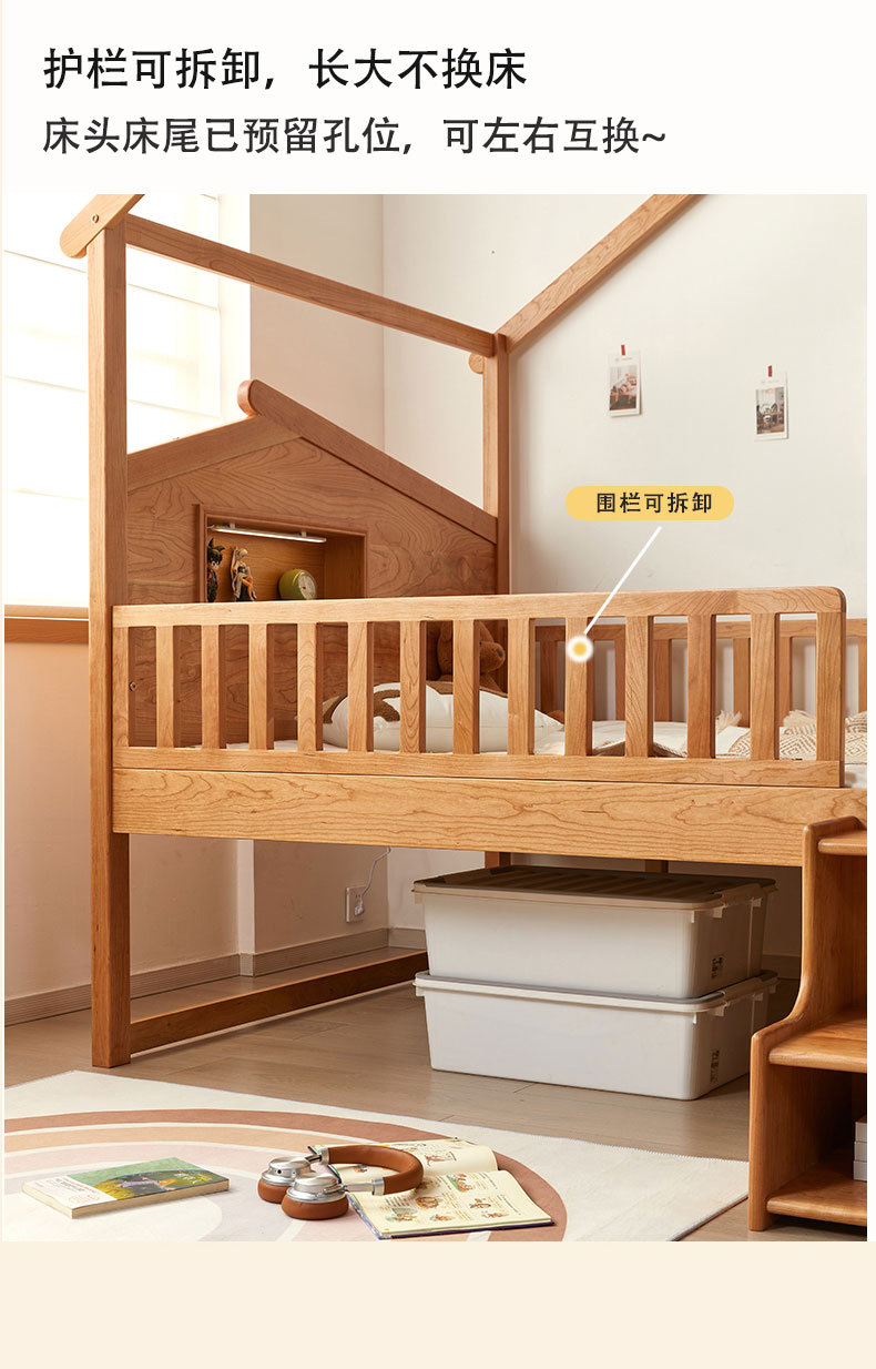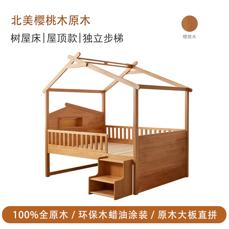수납서랍, 조명이 있는 어린이 침대 가드레일, 몬테소리 어린이 침대, 무도색 통나무 트리하우스 침대, 순수 원목 어린이 침대