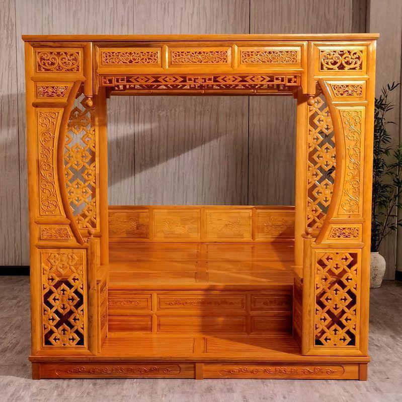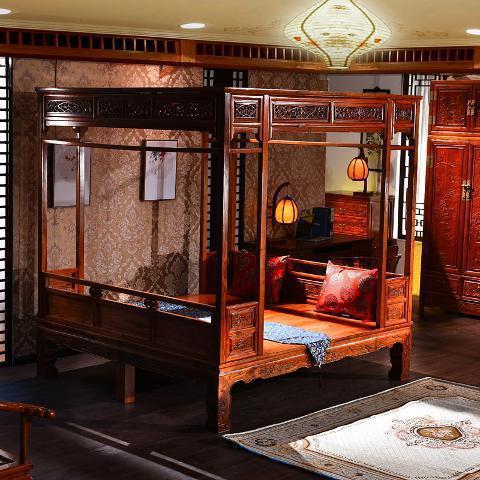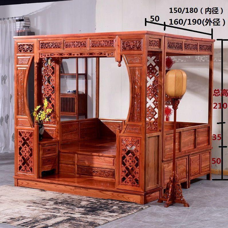 구식 모조 고전 가구 붉은 백단 원목 문 구멍 침대 천공 계단 침대 조각 선반 침대 중국식 침대스토어 가기