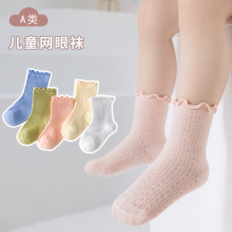 여름 얇은 메쉬 통기성 아기 하이 양말 단색 뼈없는 빗질면 어린이 양말스토어 가기