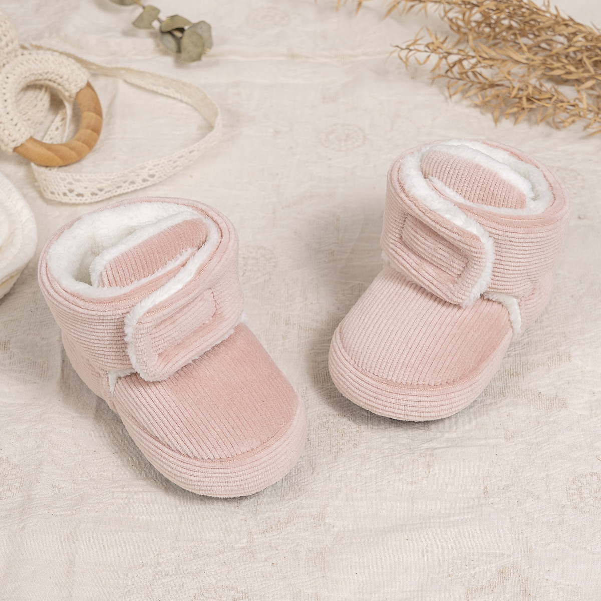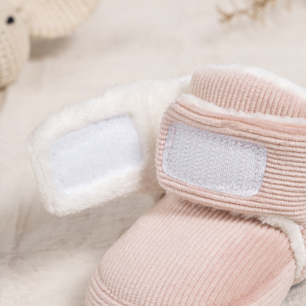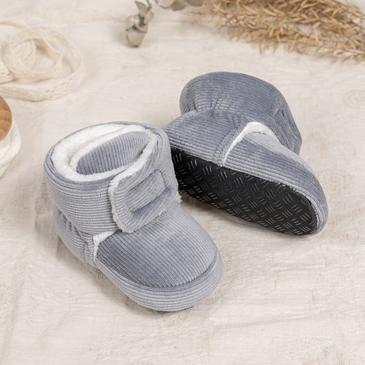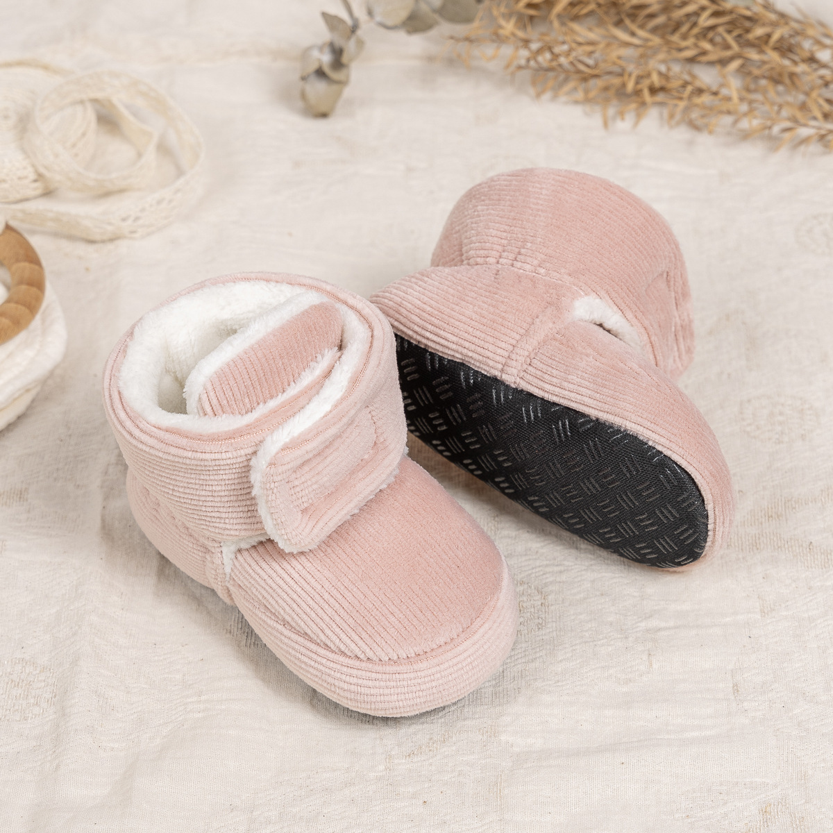 2025 겨울 새로운 두꺼운 아기 신발 벨크로 단색 부드러운 천 바닥 실내 아기 신발 아기 부츠스토어 가기