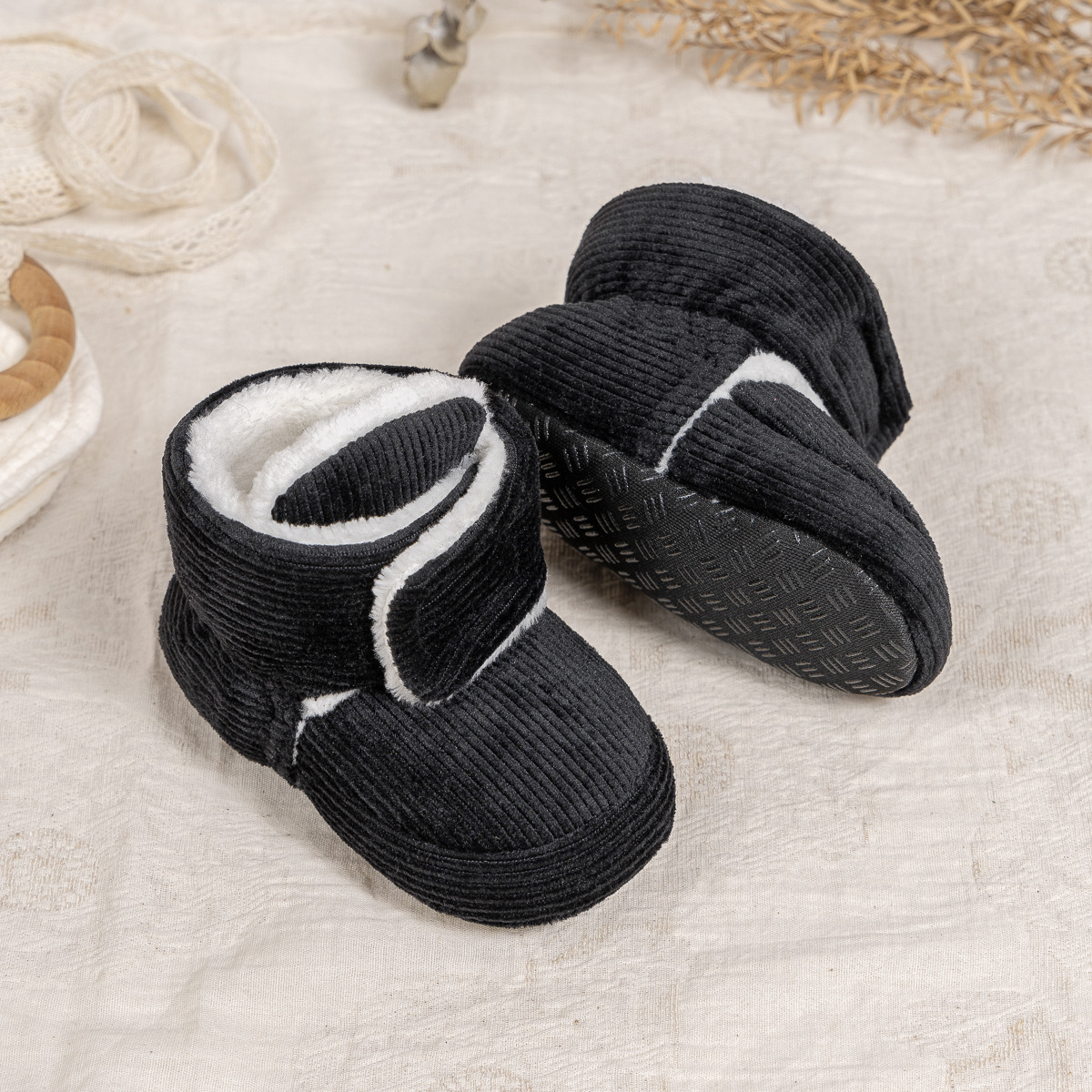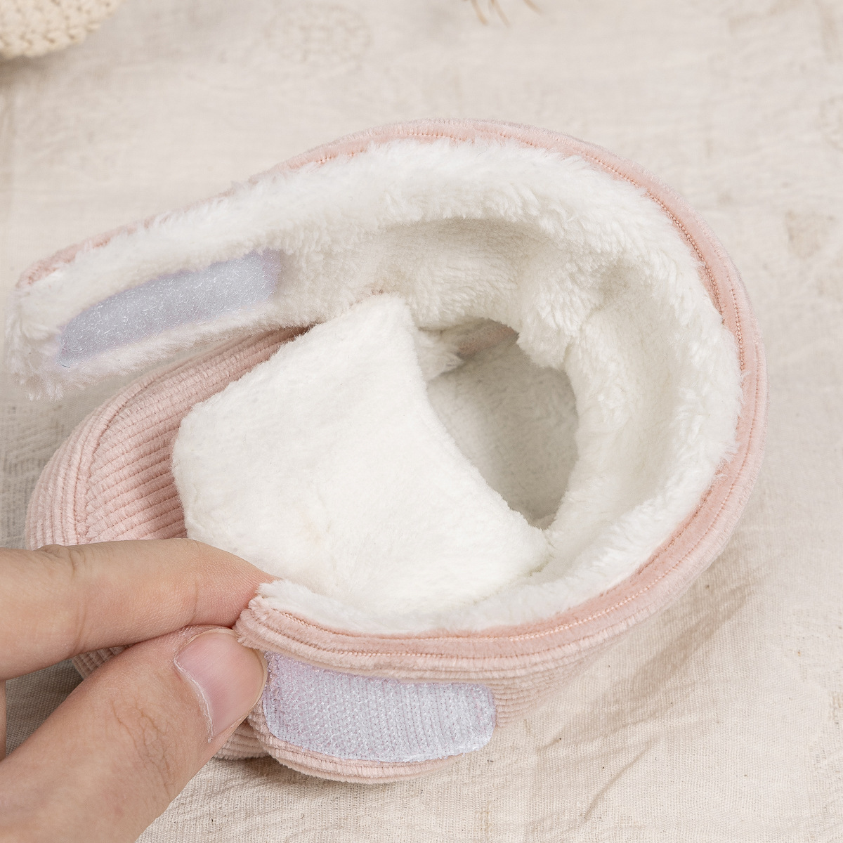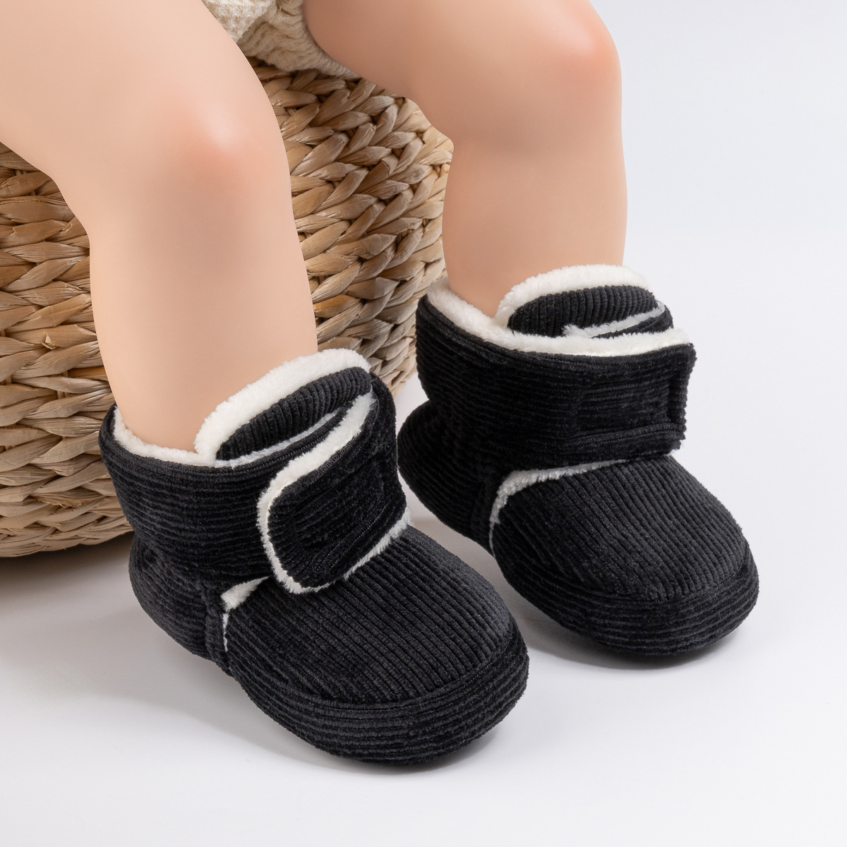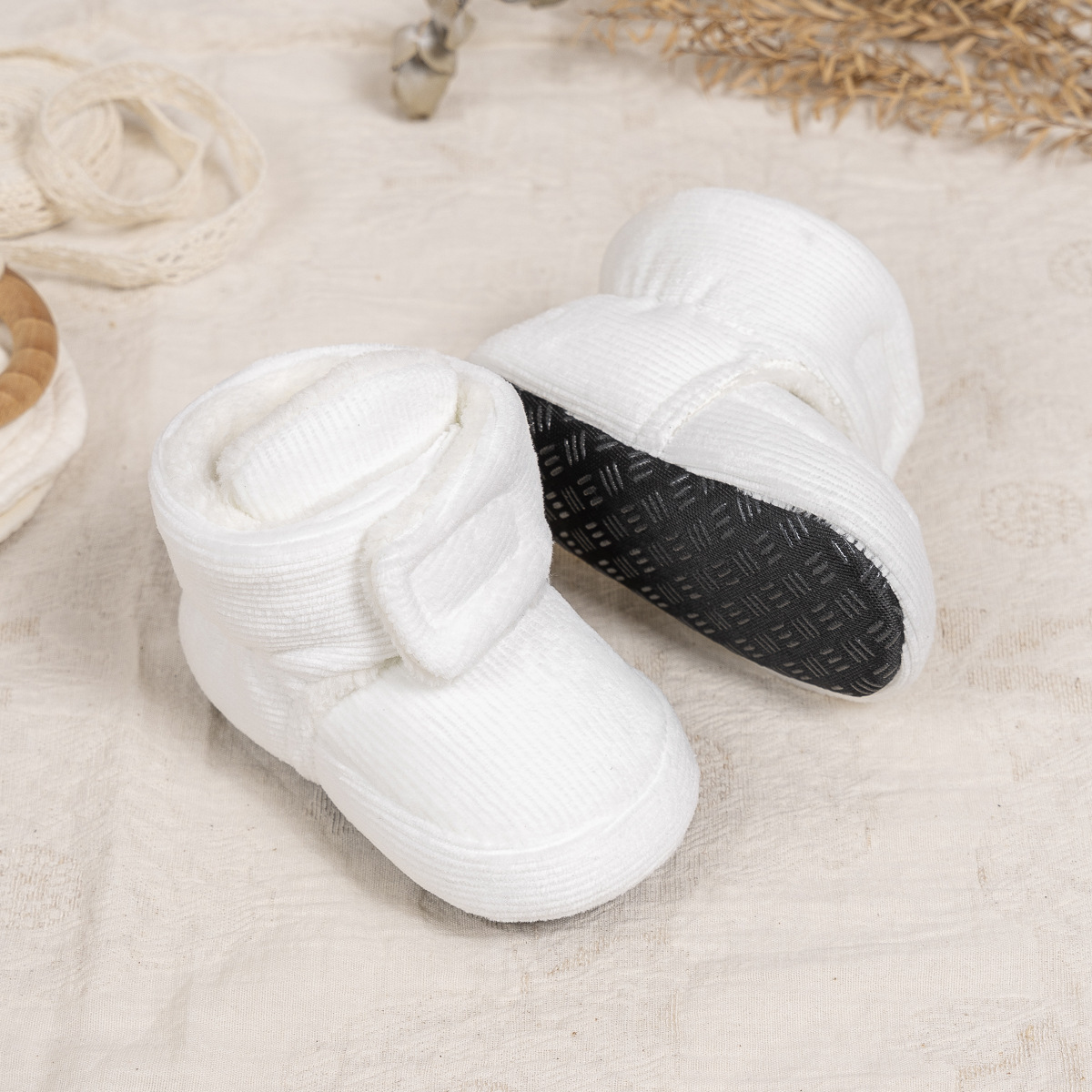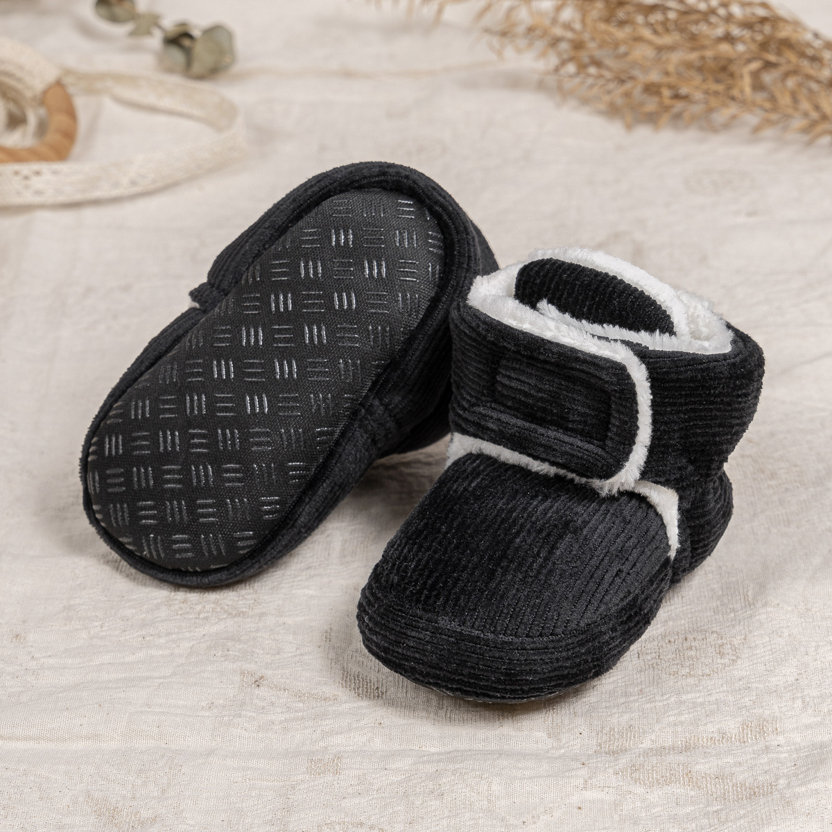 2025 겨울 새로운 두꺼운 아기 신발 벨크로 단색 부드러운 천 바닥 실내 아기 신발 아기 부츠스토어 가기