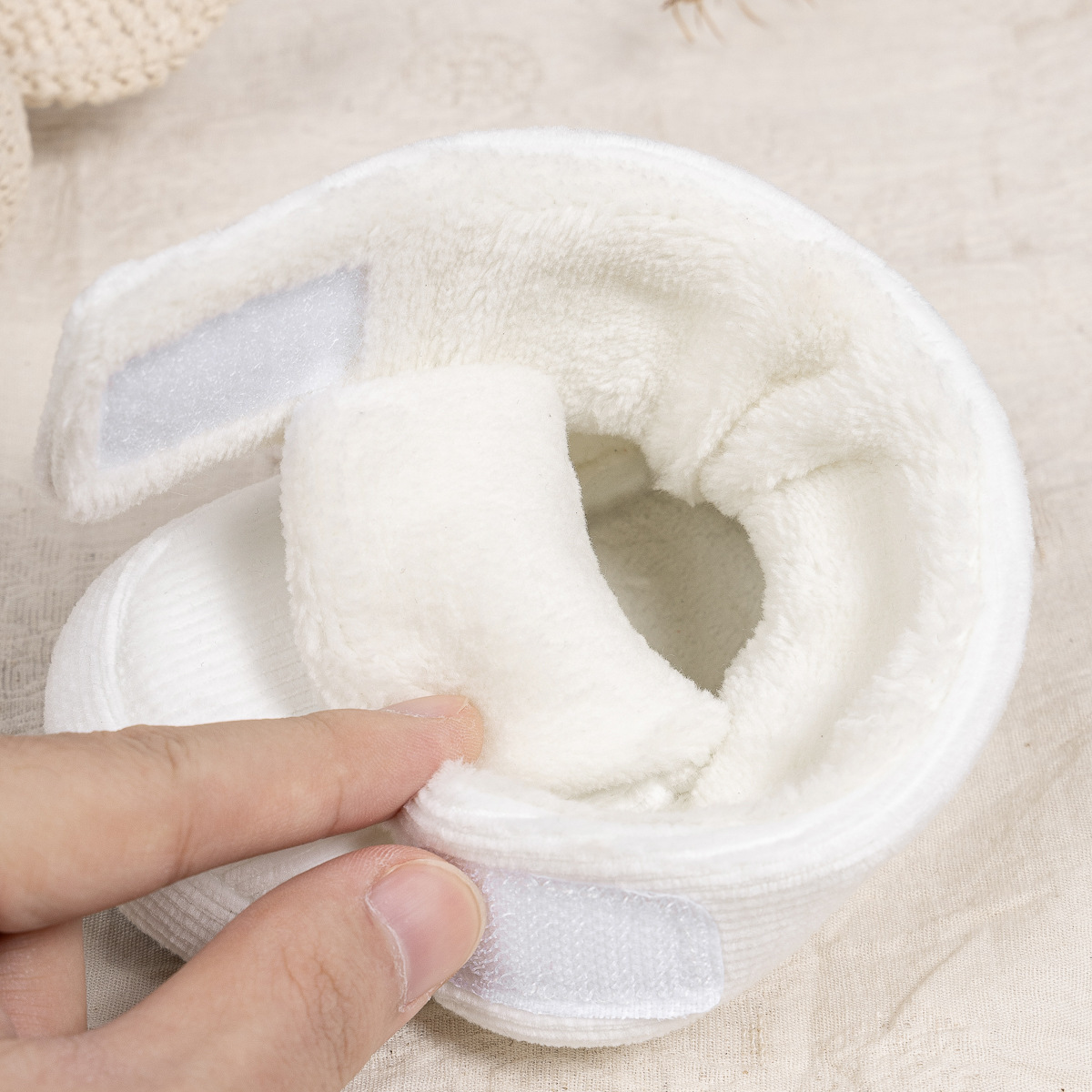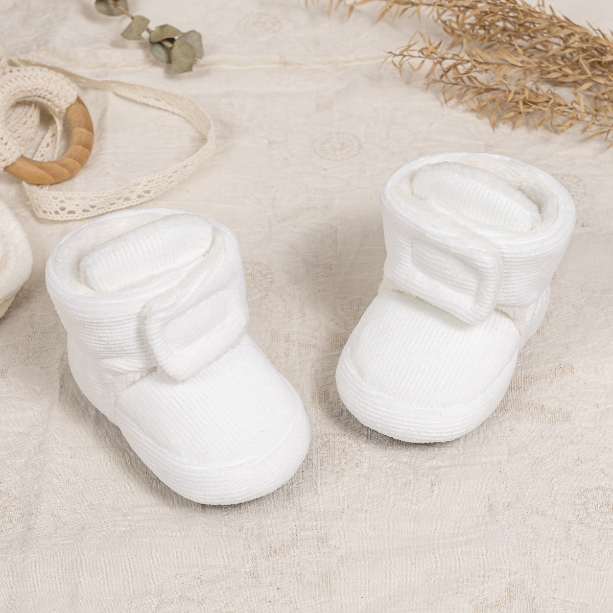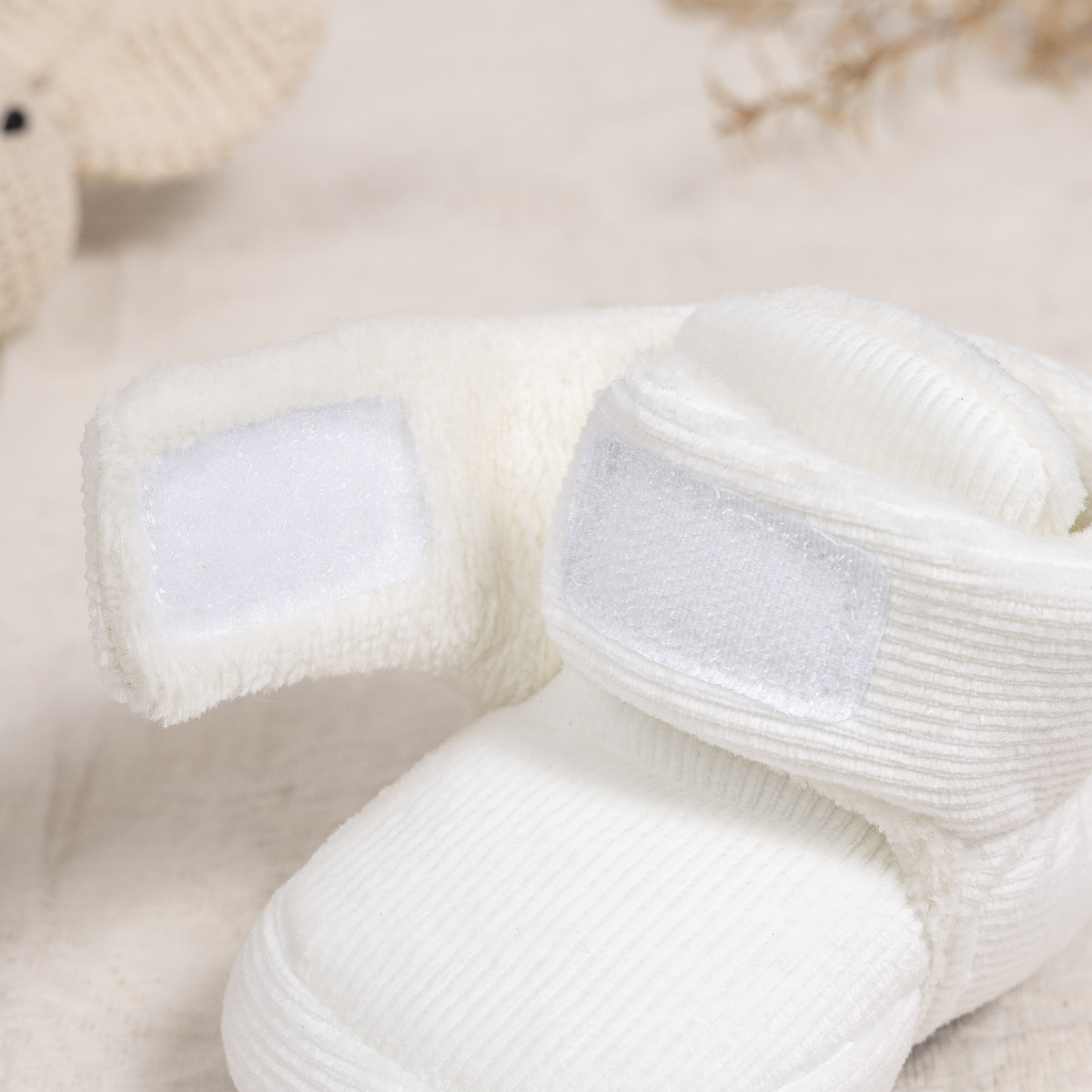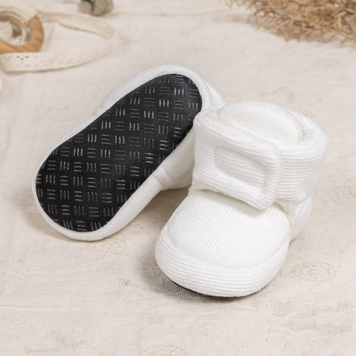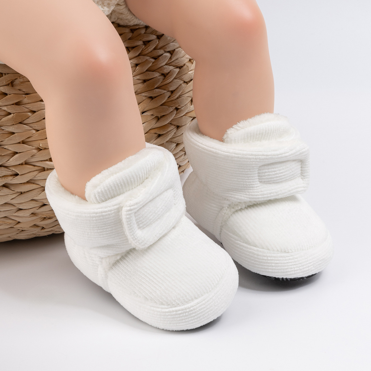 2025 겨울 새로운 두꺼운 아기 신발 벨크로 단색 부드러운 천 바닥 실내 아기 신발 아기 부츠스토어 가기