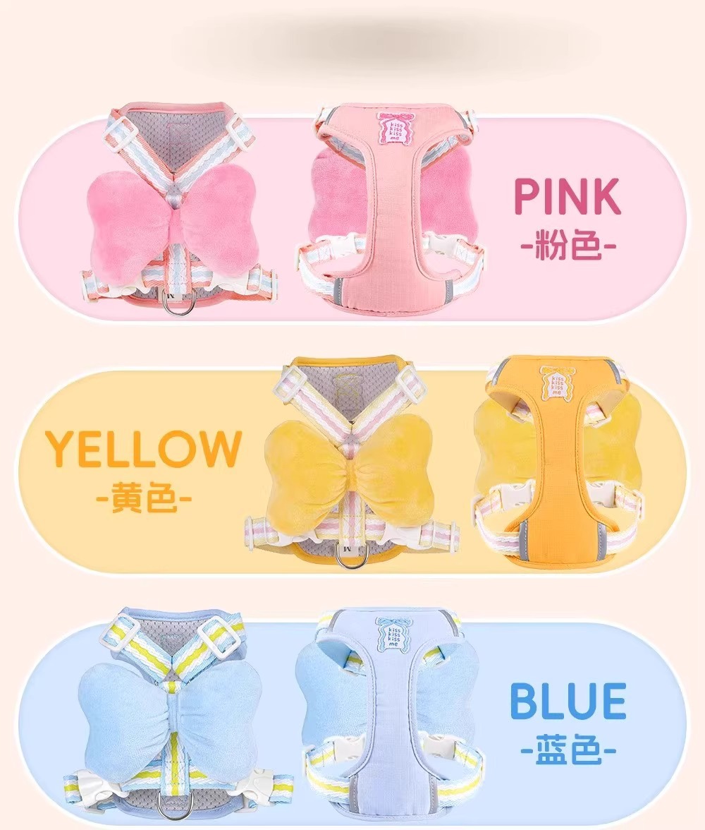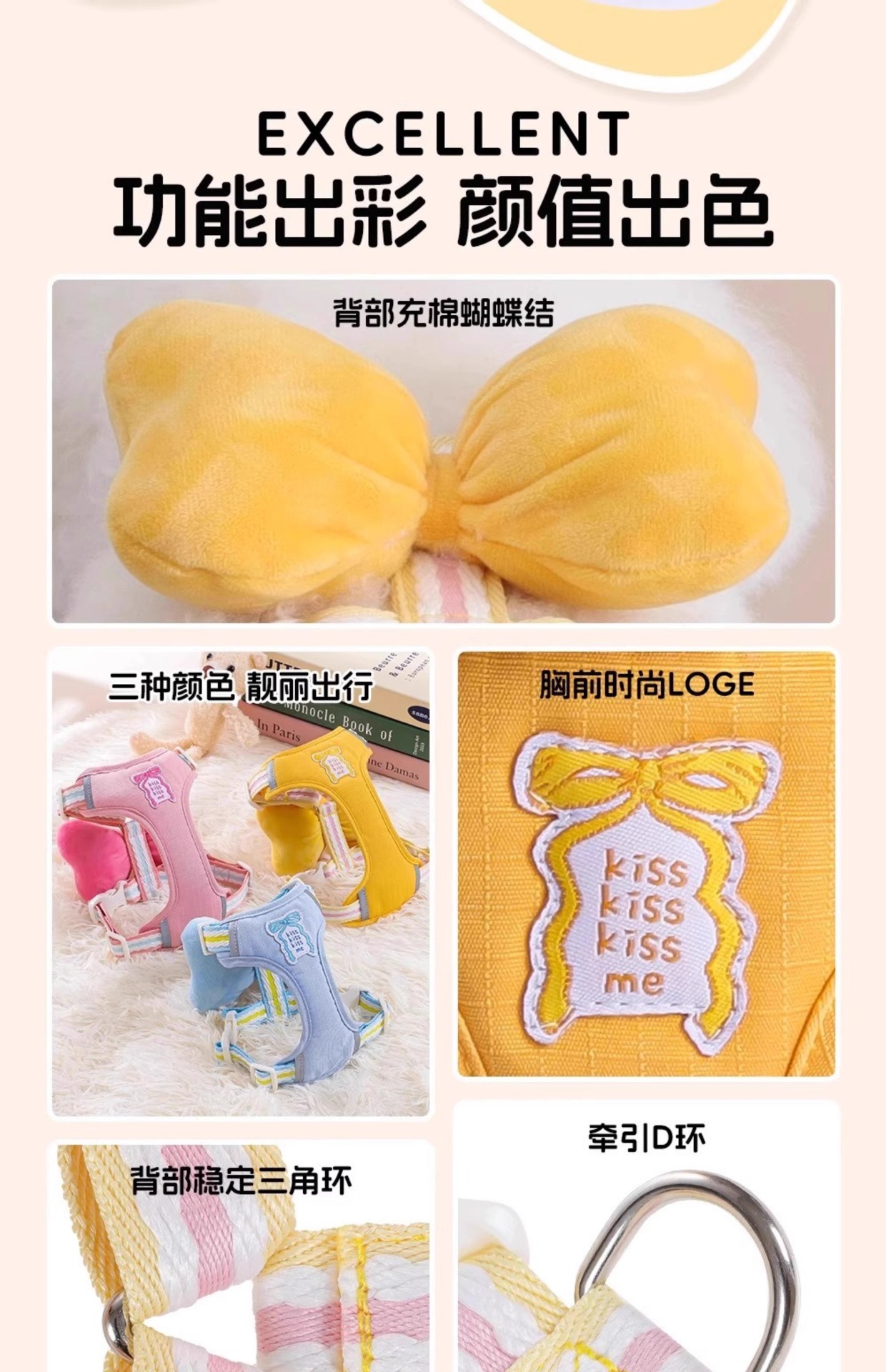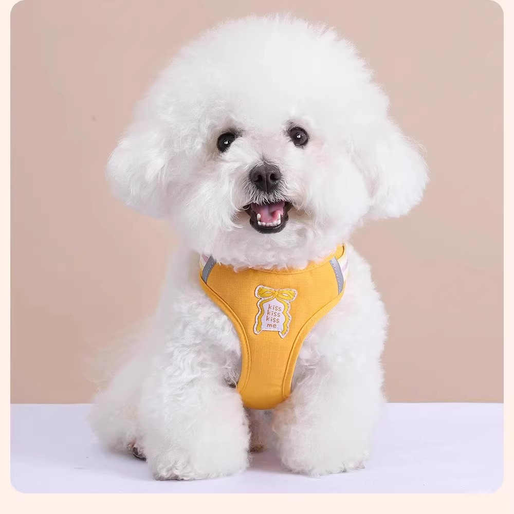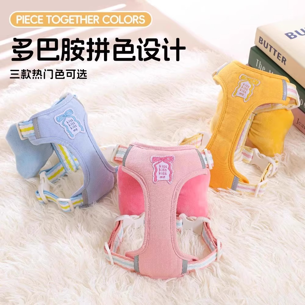 강아지 가죽끈, 새로운 리본형 가슴끈, 소형견 조끼형 비숑 테디 이탈방지 개 산책용 로프