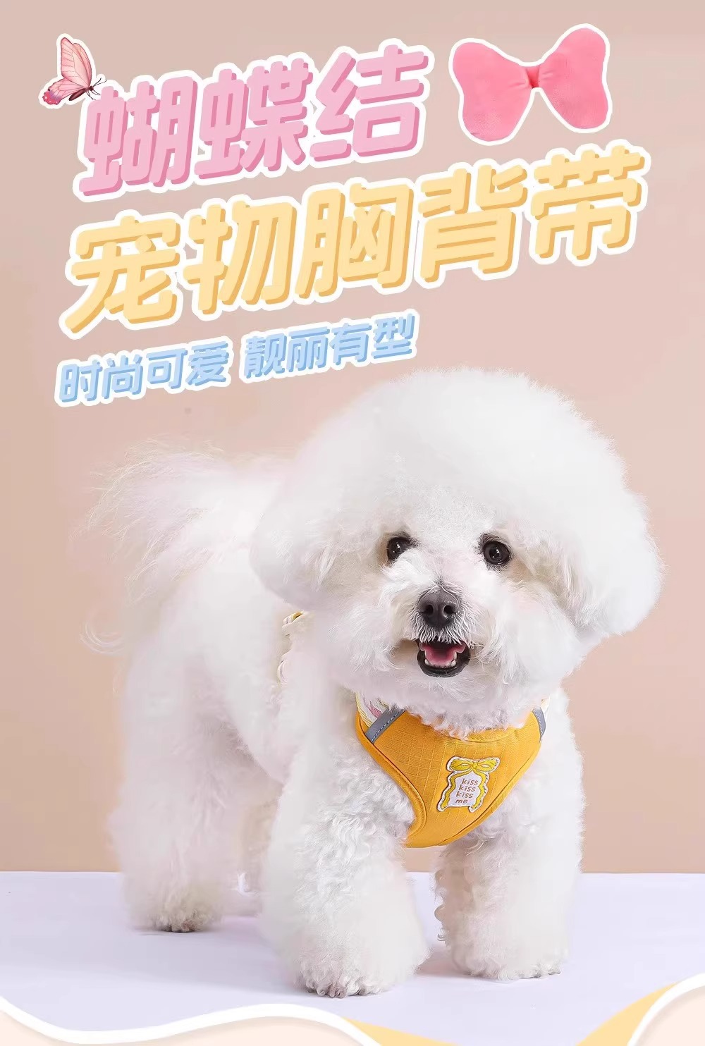 강아지 가죽끈, 새로운 리본형 가슴끈, 소형견 조끼형 비숑 테디 이탈방지 개 산책용 로프스토어 가기