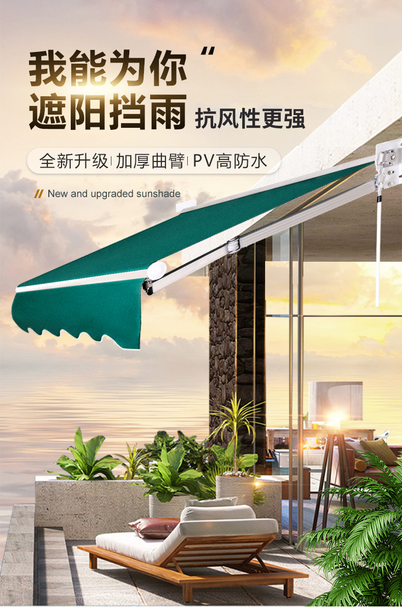 태양 그늘 개폐식 접이식 수동 전기 수축 천막 발코니 야외 천막 안뜰 외관 차양
