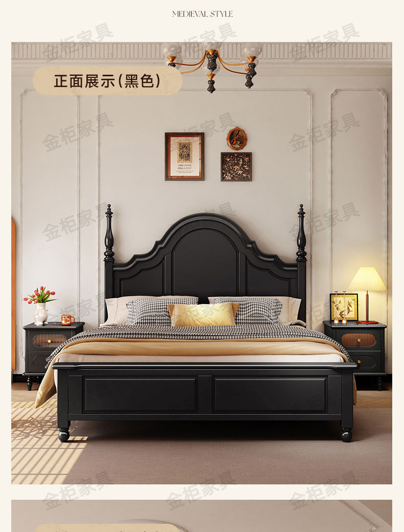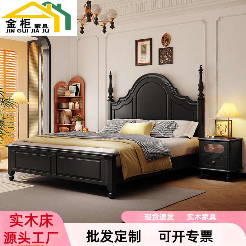 미국식 원목 침대 블랙 침대 1.8M 더블 침대 모던 심플 레트로 프렌치 빅 침대 라이트 럭셔리 마스터 침실 웨딩 침대