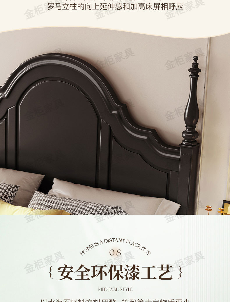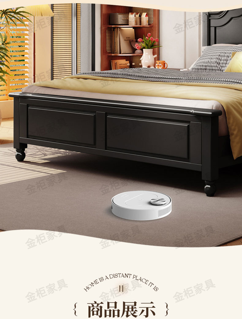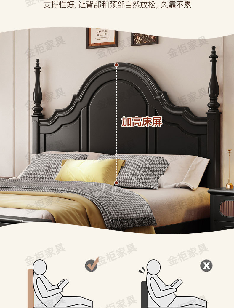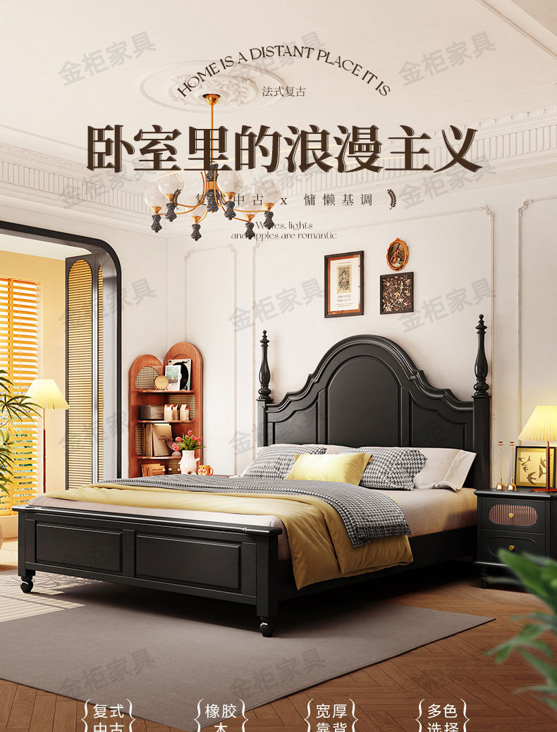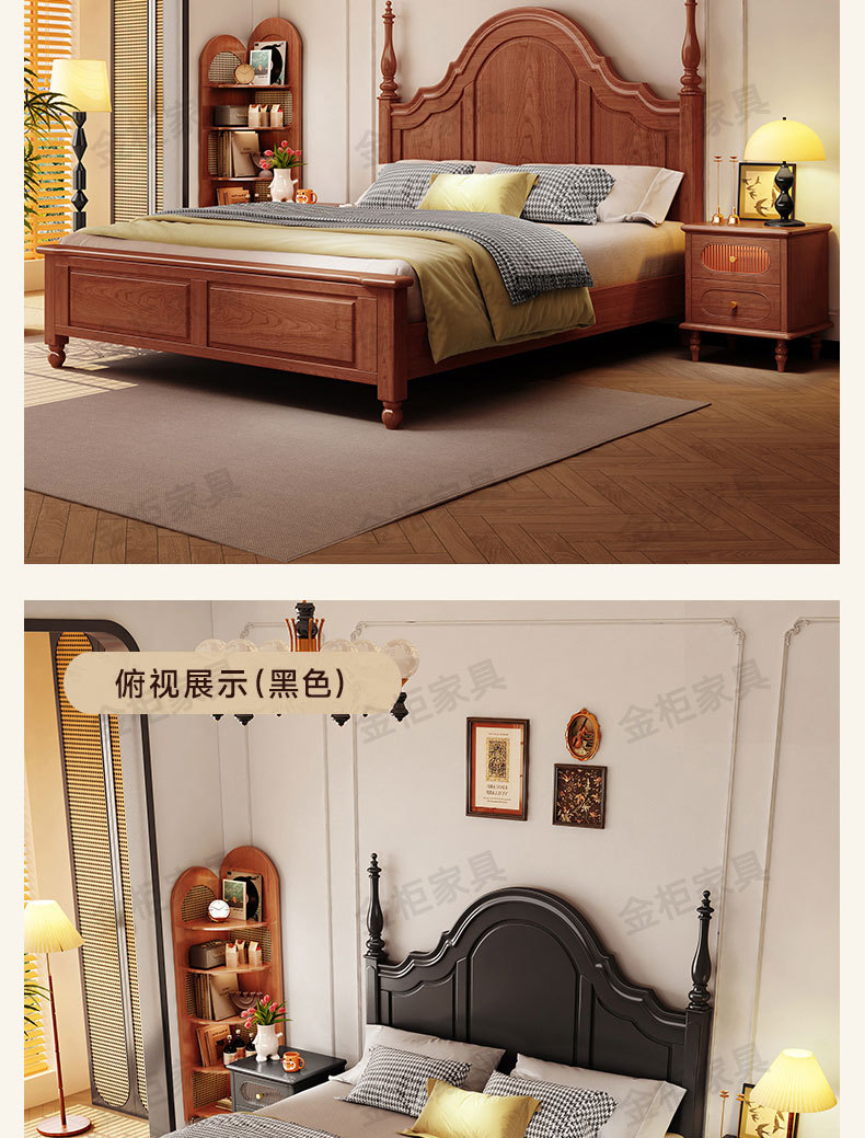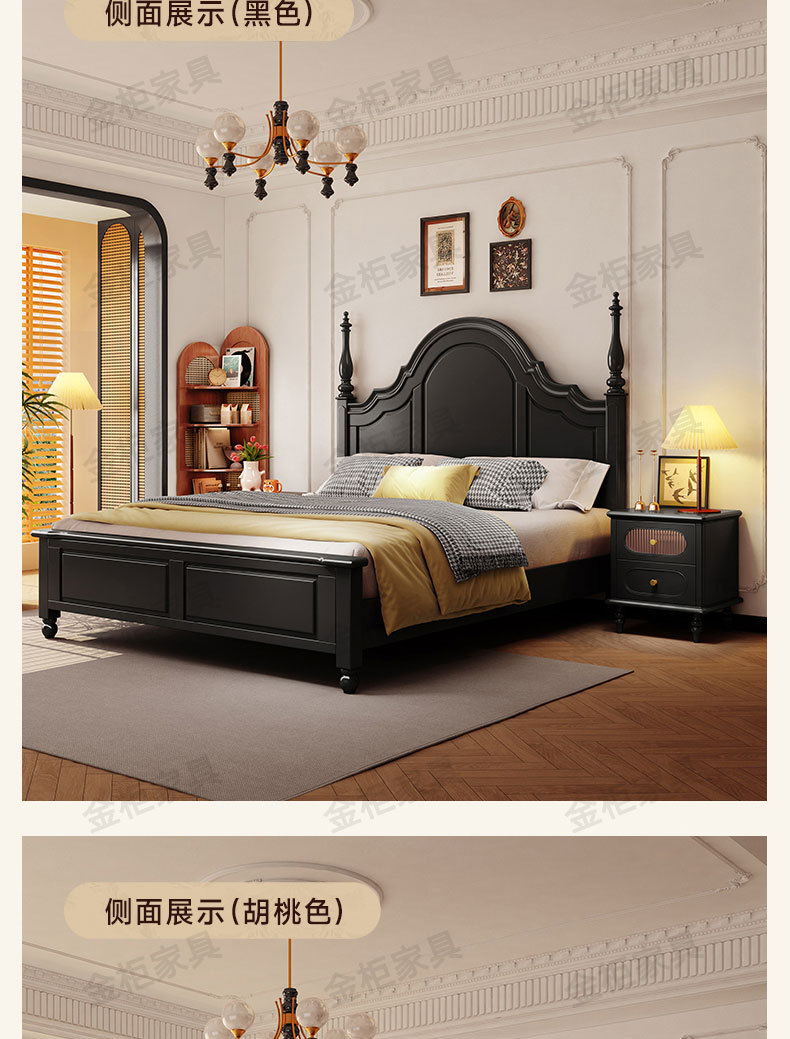 미국식 원목 침대 블랙 침대 1.8M 더블 침대 모던 심플 레트로 프렌치 빅 침대 라이트 럭셔리 마스터 침실 웨딩 침대스토어 가기