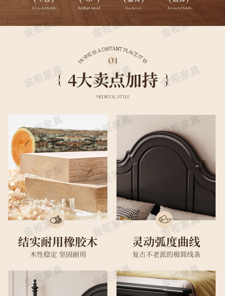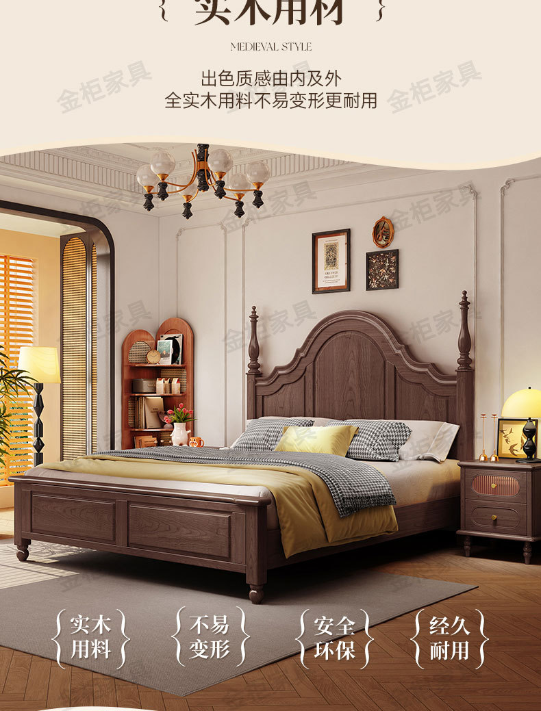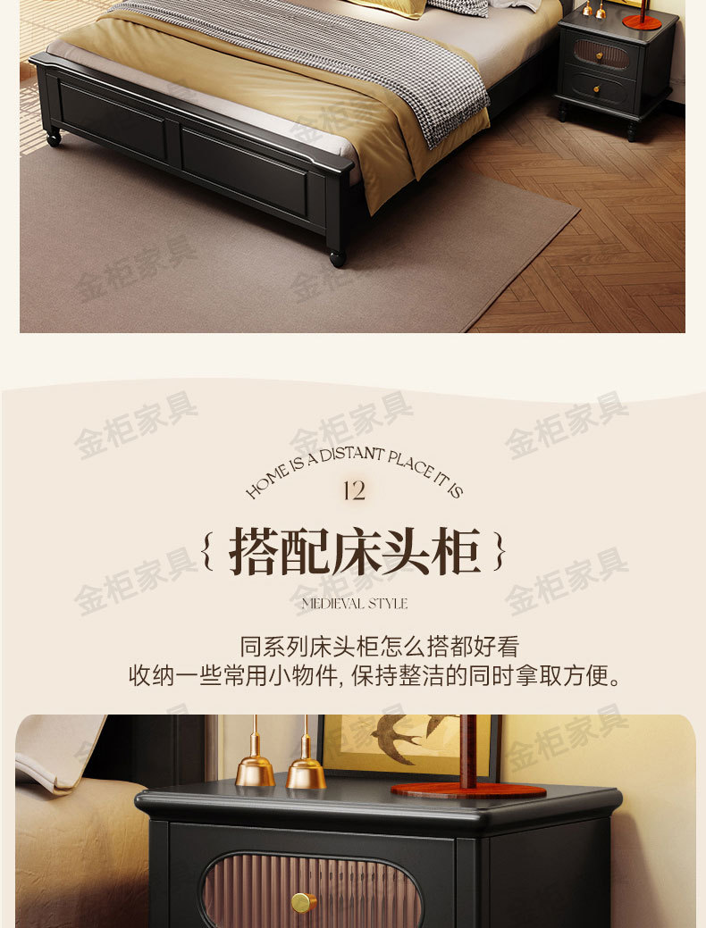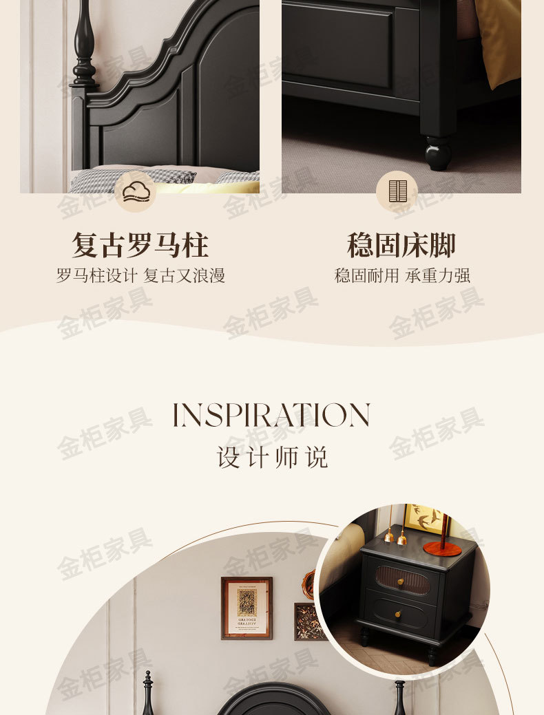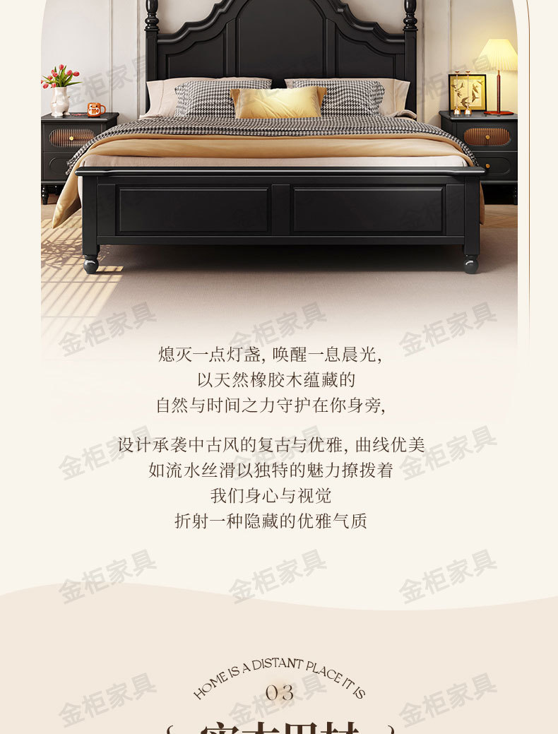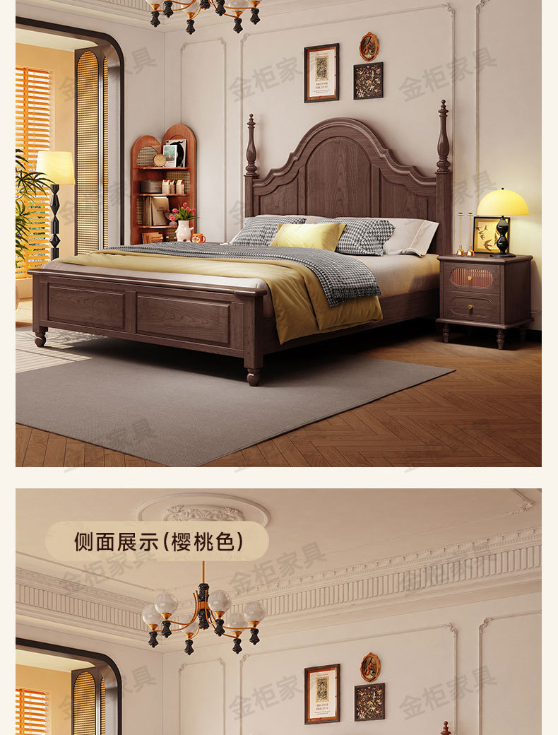 미국식 원목 침대 블랙 침대 1.8M 더블 침대 모던 심플 레트로 프렌치 빅 침대 라이트 럭셔리 마스터 침실 웨딩 침대스토어 가기