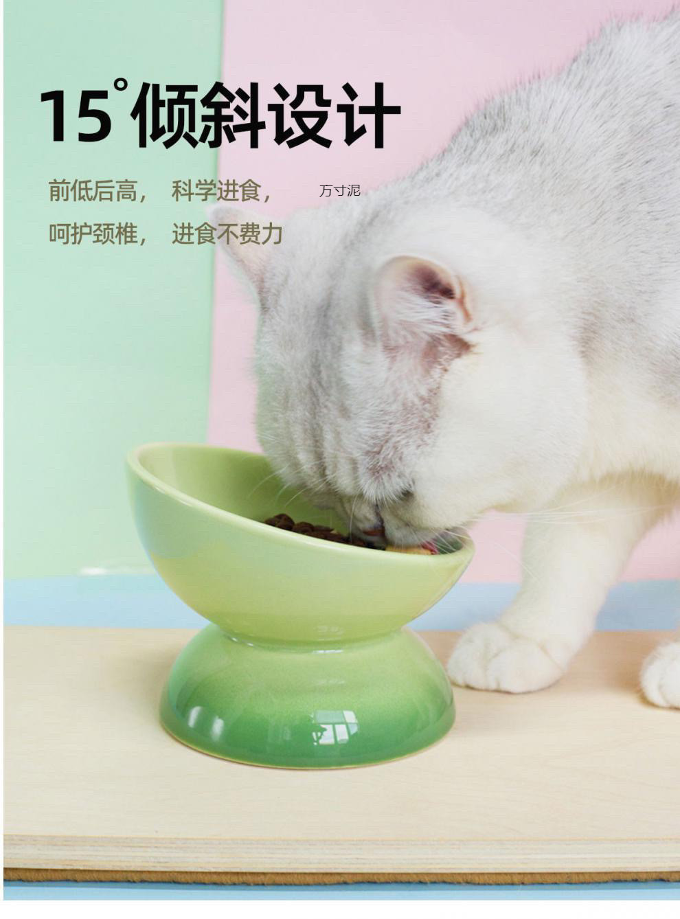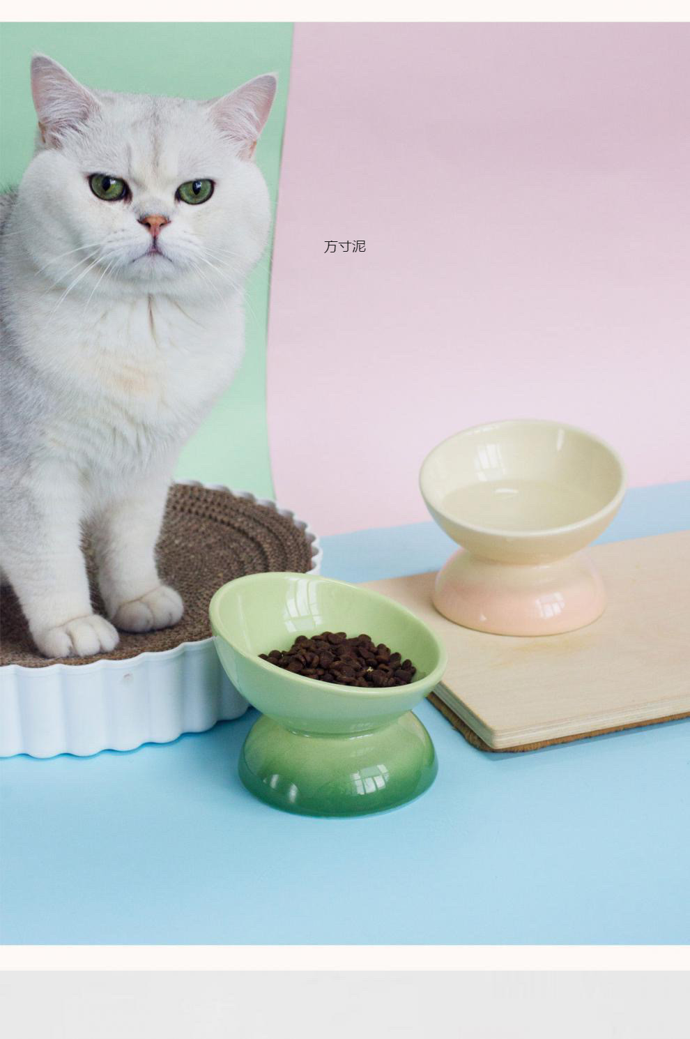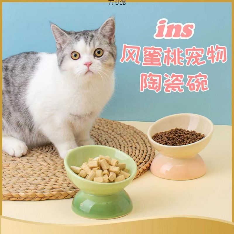 고양이, 소형견, 애완동물용 높은 그릇, 애완동물 그릇, 목 보호대, 경사진 그릇, 귀여운 고양이 그릇, 고양이 그릇, 세라믹 토끼 공장