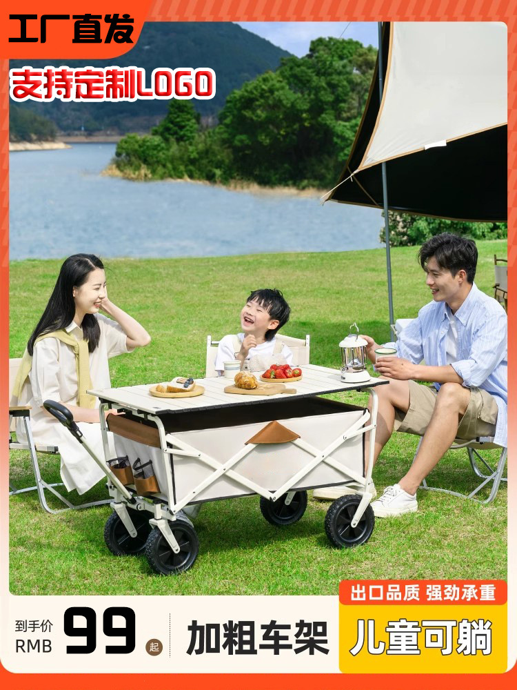 캠핑카 트롤리 야외 접이식 손으로 밀어주는 익스프레스 트롤리 캠핑 어린이 리클라이닝 소형 트레일러 피크닉 트롤리 야외