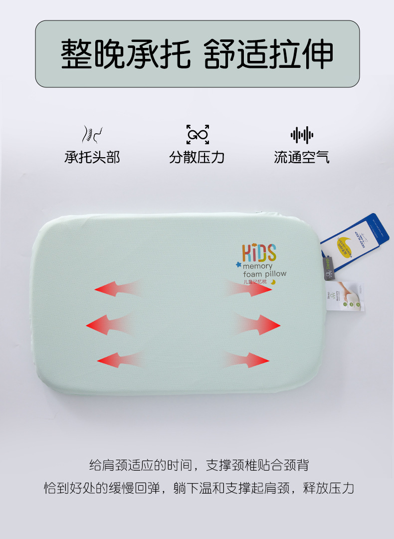 척추 보호 어린이 베개 느린 반동 통기성 부드러운 지지 베개 코어 중간 낮은 아기 작은 베개 학생 얼음 실크 베개