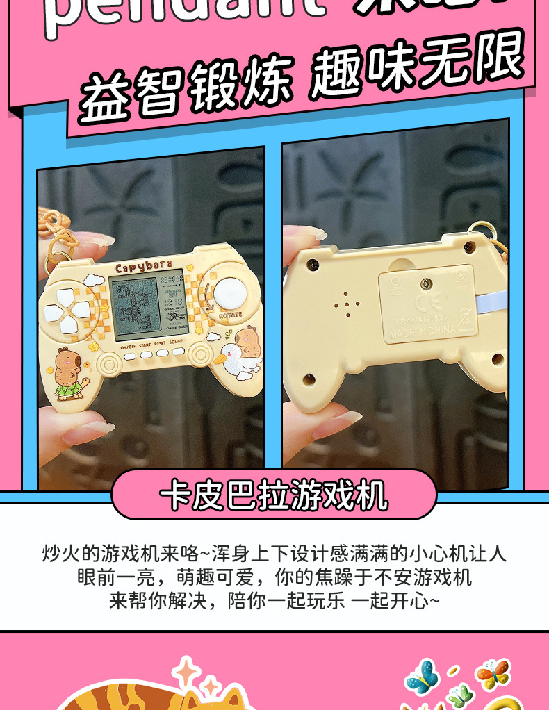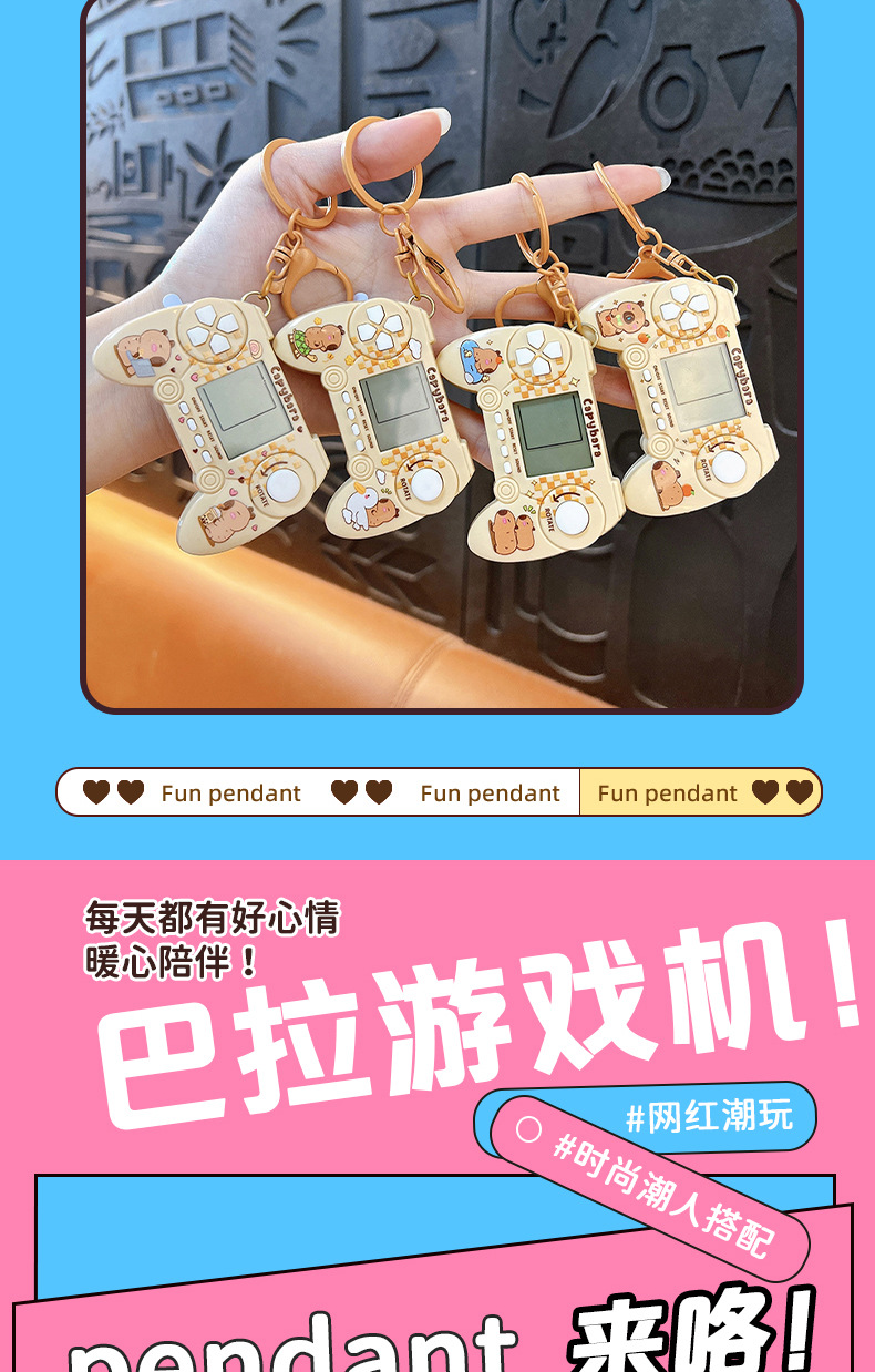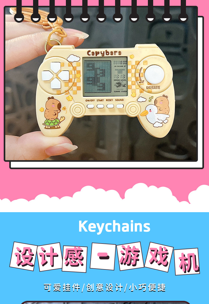 Kapibala 게임 콘솔 키 체인 펜던트 어린이 테트리스 핸들 절묘한 학생 감압 키 체인스토어 가기