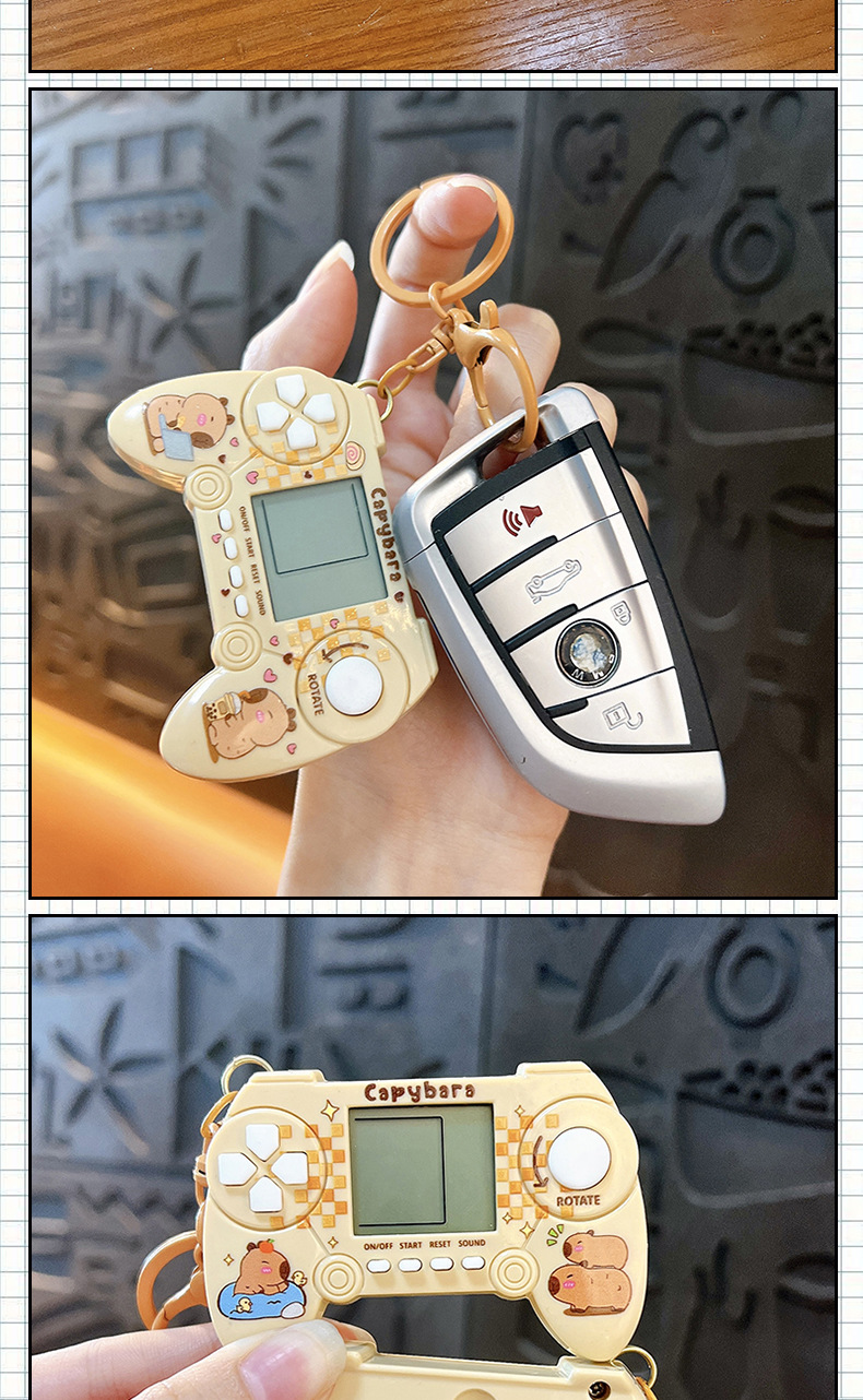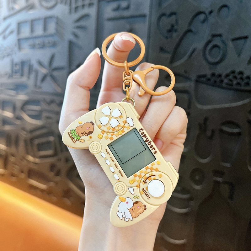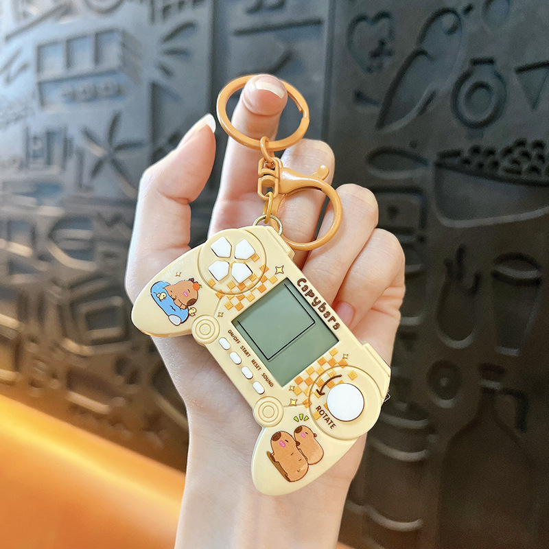Kapibala 게임 콘솔 키 체인 펜던트 어린이 테트리스 핸들 절묘한 학생 감압 키 체인
