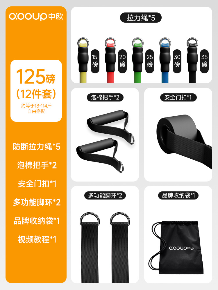 • [고급] 12종 세트/고탄성 파손 방지 125파운드/강도 조절 가능 - [가끔 운동하는 남성/피트니스 기초가 있는 여성에게 권장]
