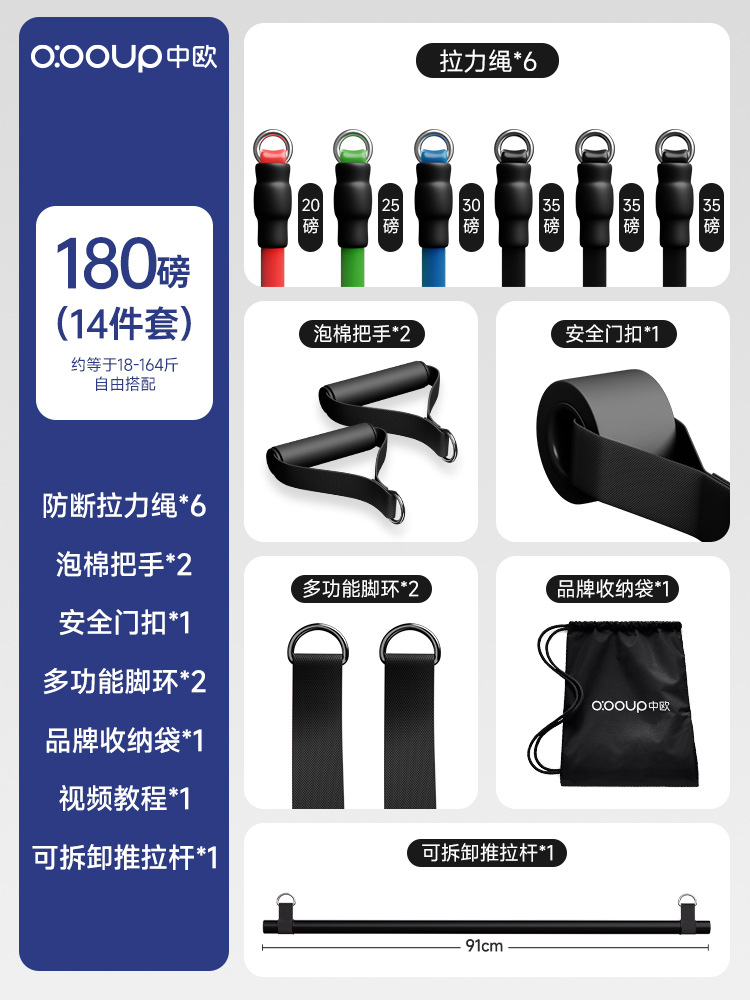 • [프로페셔널 + 탈부착형 푸시풀바] 14종세트/고탄성, 파손방지 180파운드 - [기초체력이 있는 남성/여성에게 권장되는 만능 트레이닝]