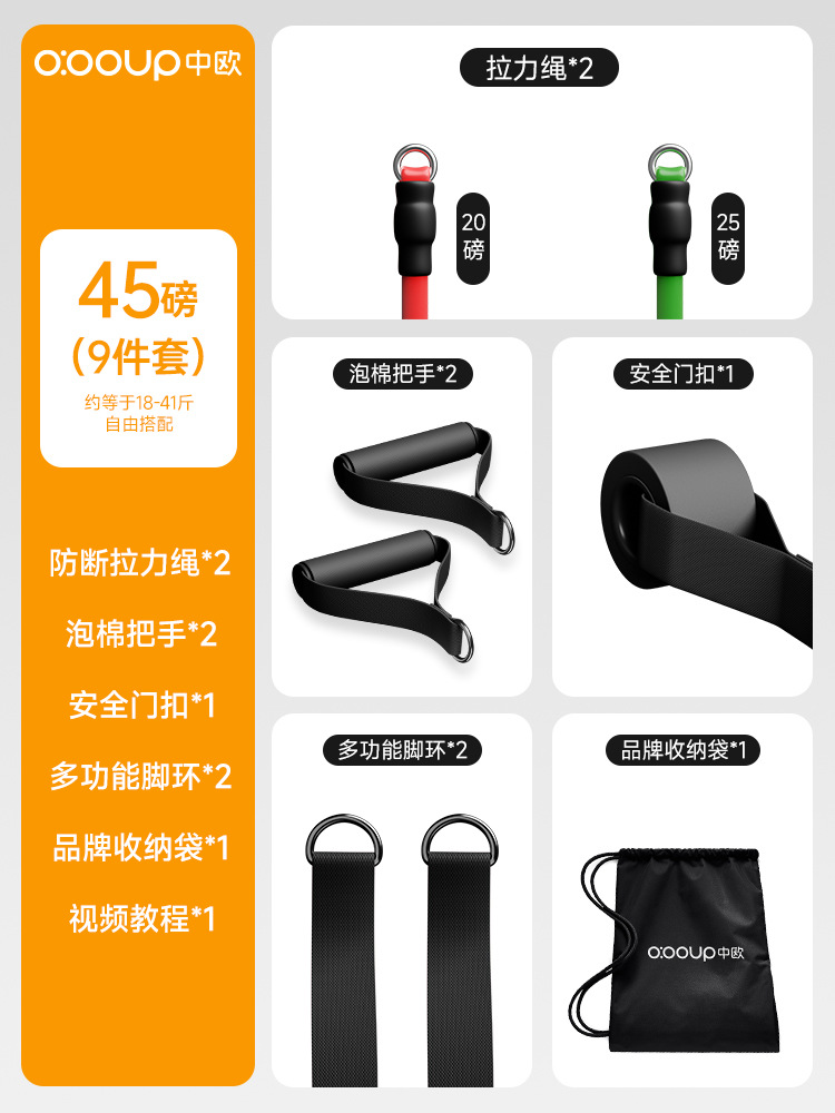 • [초보자] 9종세트/고탄성 파손방지 45파운드/강도조절 가능 - [워밍업/스트레칭 권장]