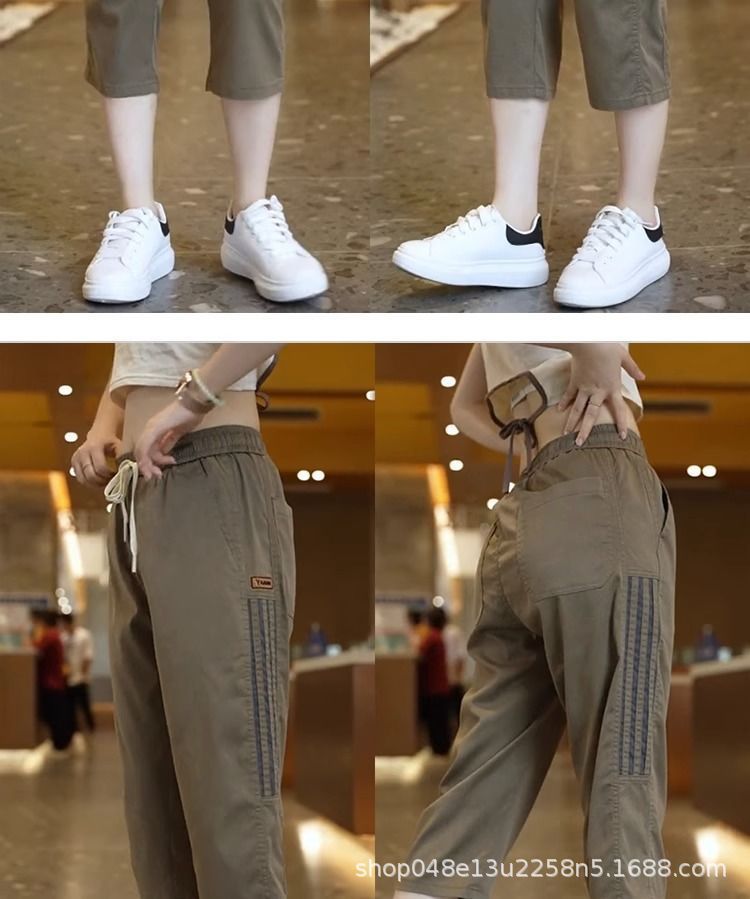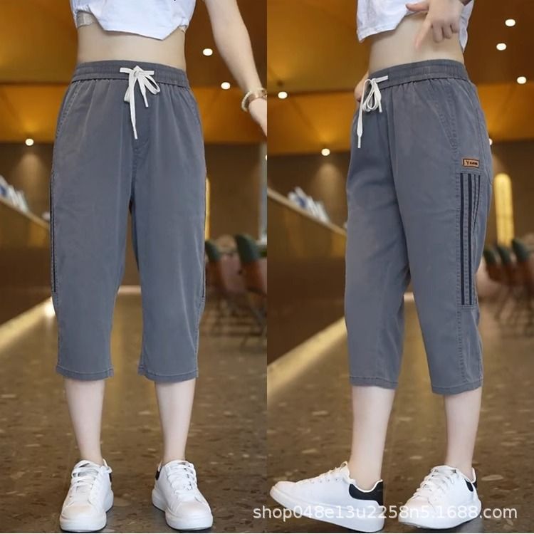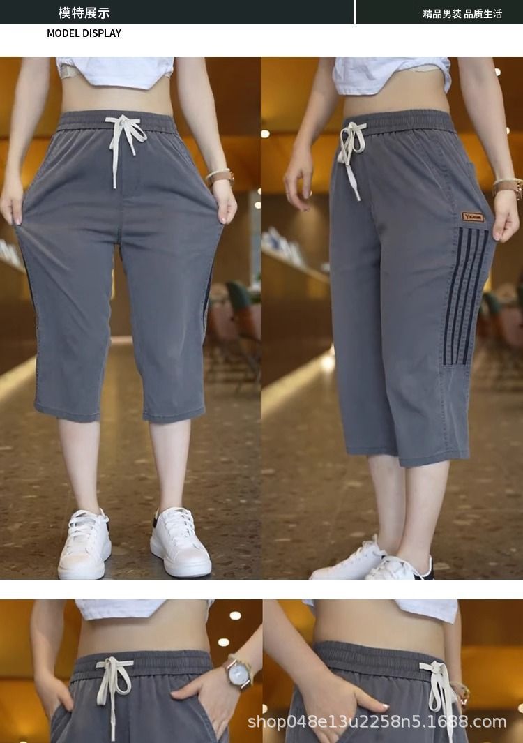 Douyin 새로운 캐주얼 무릎 위 반바지 남성 여름 스포츠 바지 속건성 얼음 실크 남성 유행 통기성 크롭 바지스토어 가기