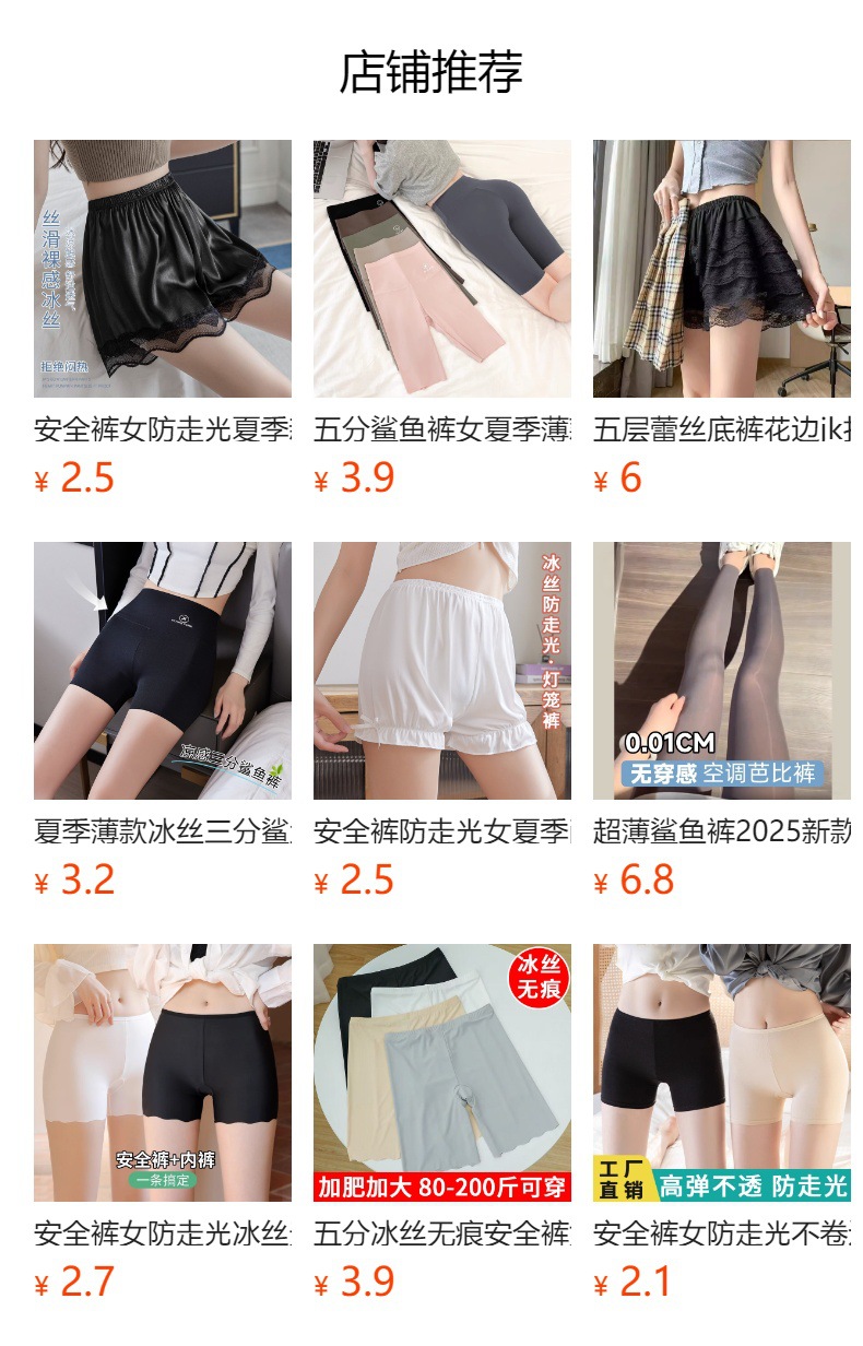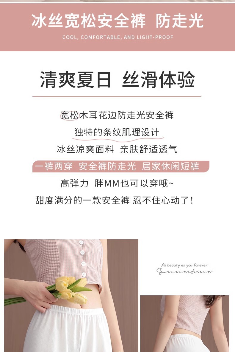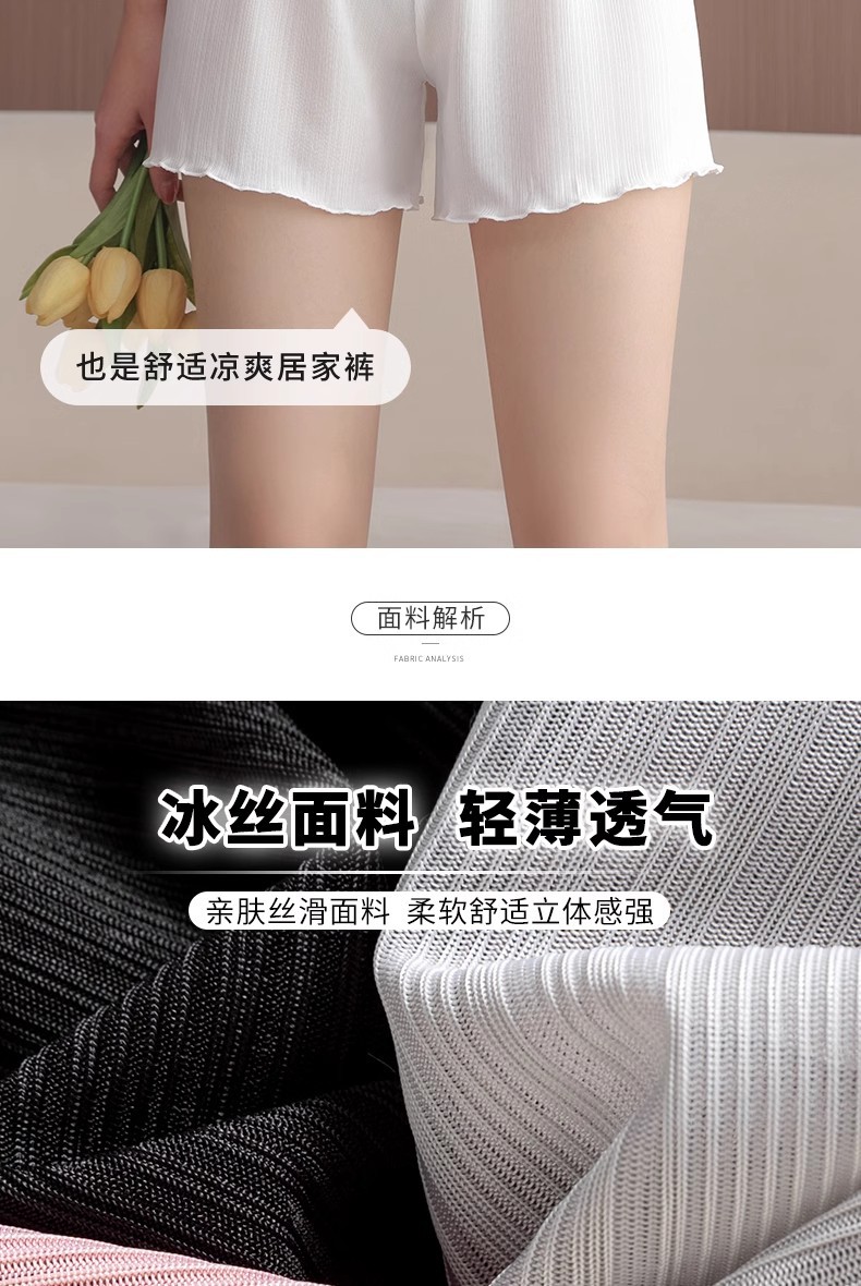 아이스 실크 얇은 스타일, 루즈하고 집 밖에서도 착용 가능, 흔적 없음, 비컬링, 3점 베이스 레이어, 노출 방지, 여름용 여성용 안전 반바지스토어 가기