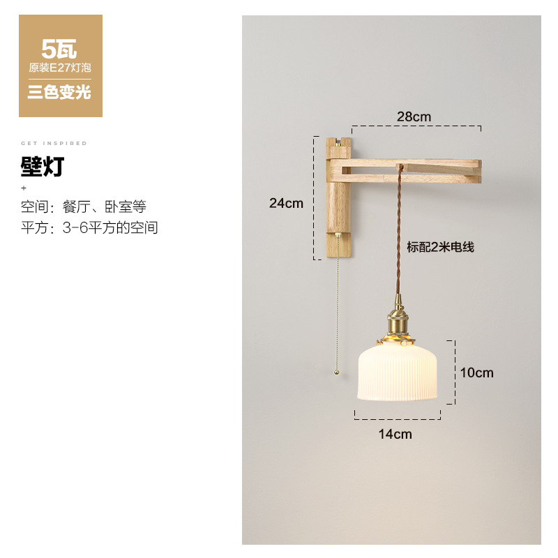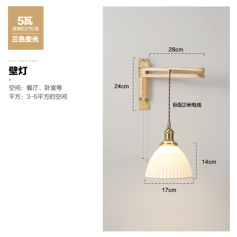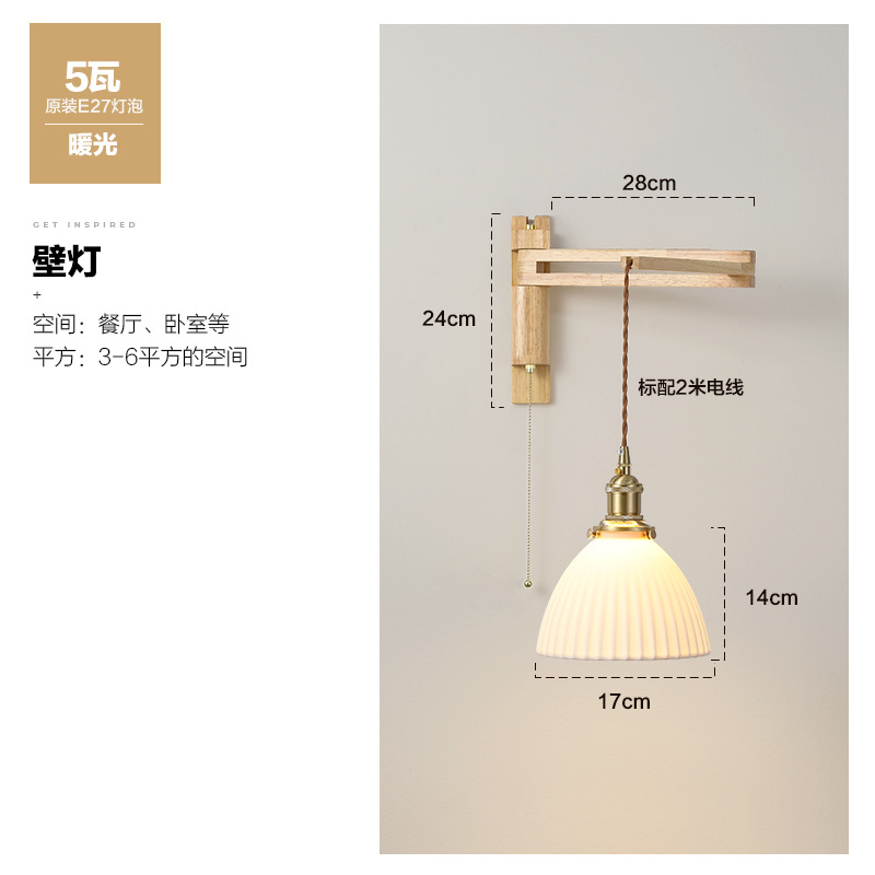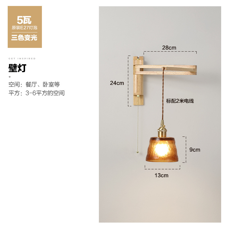 일본 복고풍 단단한 나무 개폐식 벽 램프 거실 식당 연구 침실 와비사비 스타일 유리 로커 폴 접이식 침대 옆 램프스토어 가기