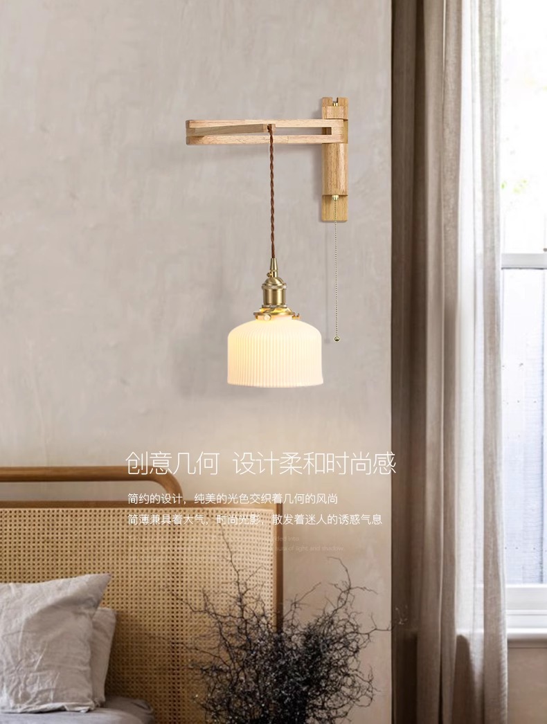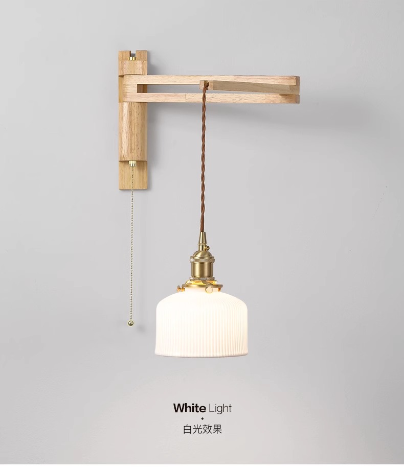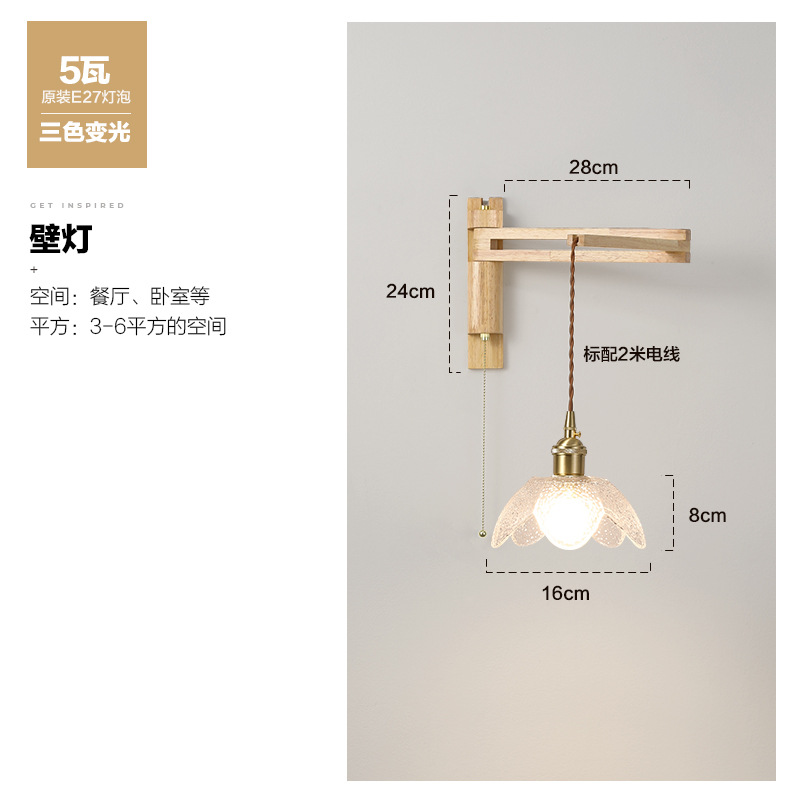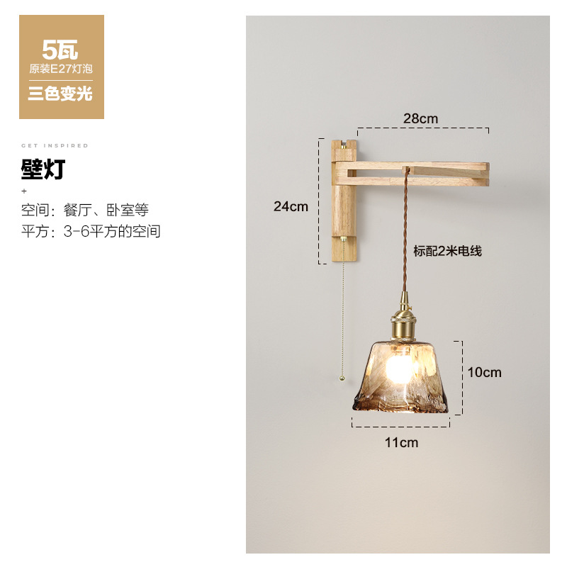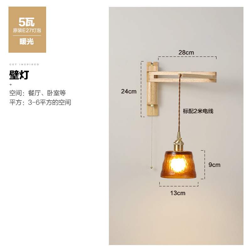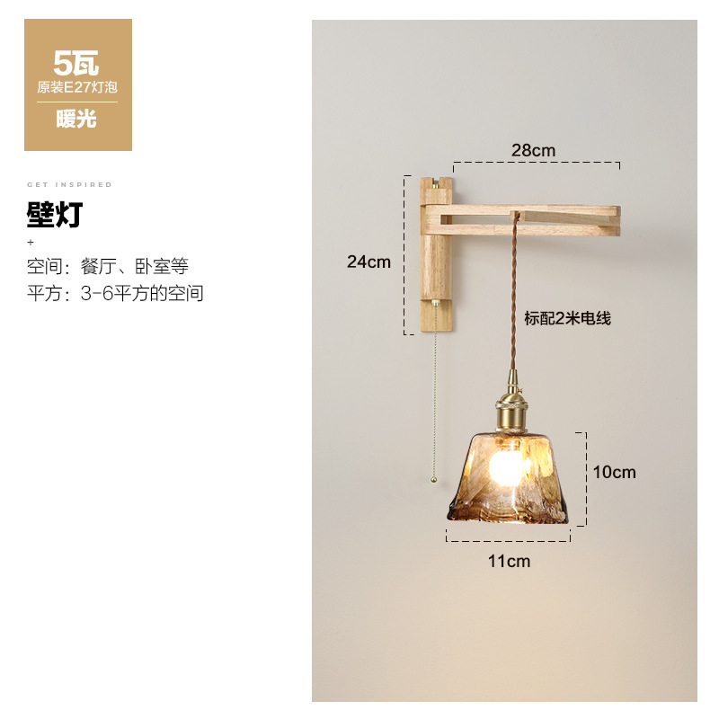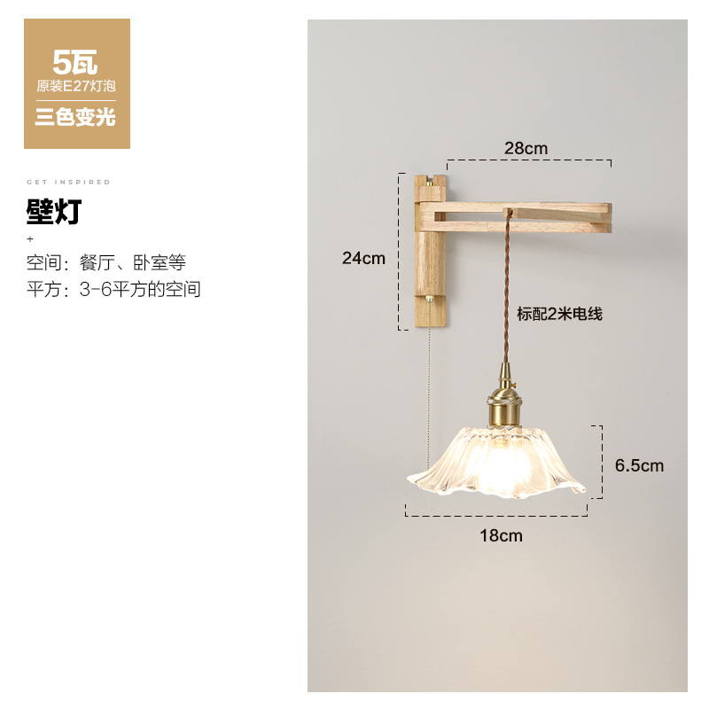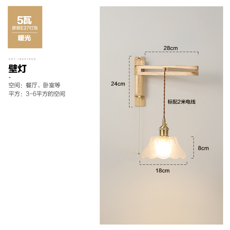 일본 복고풍 단단한 나무 개폐식 벽 램프 거실 식당 연구 침실 와비사비 스타일 유리 로커 폴 접이식 침대 옆 램프