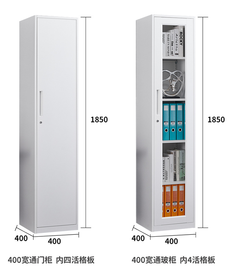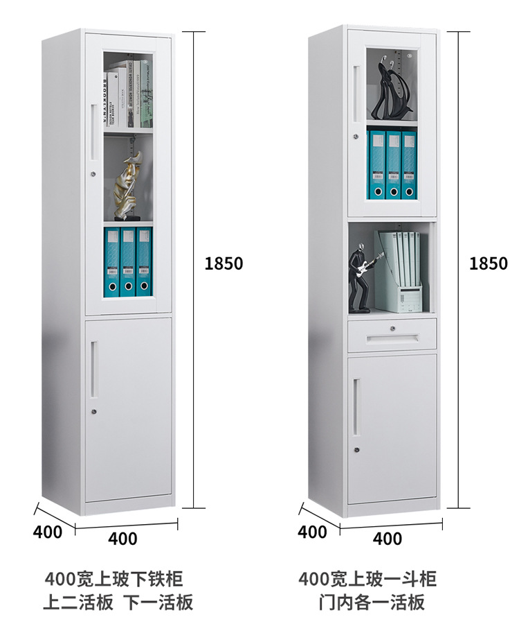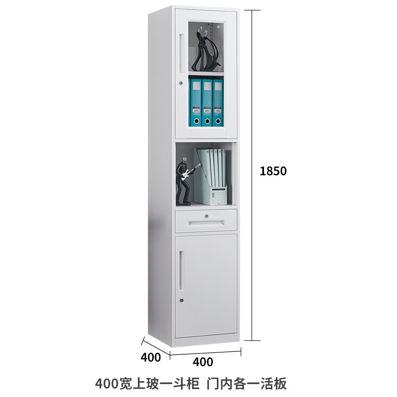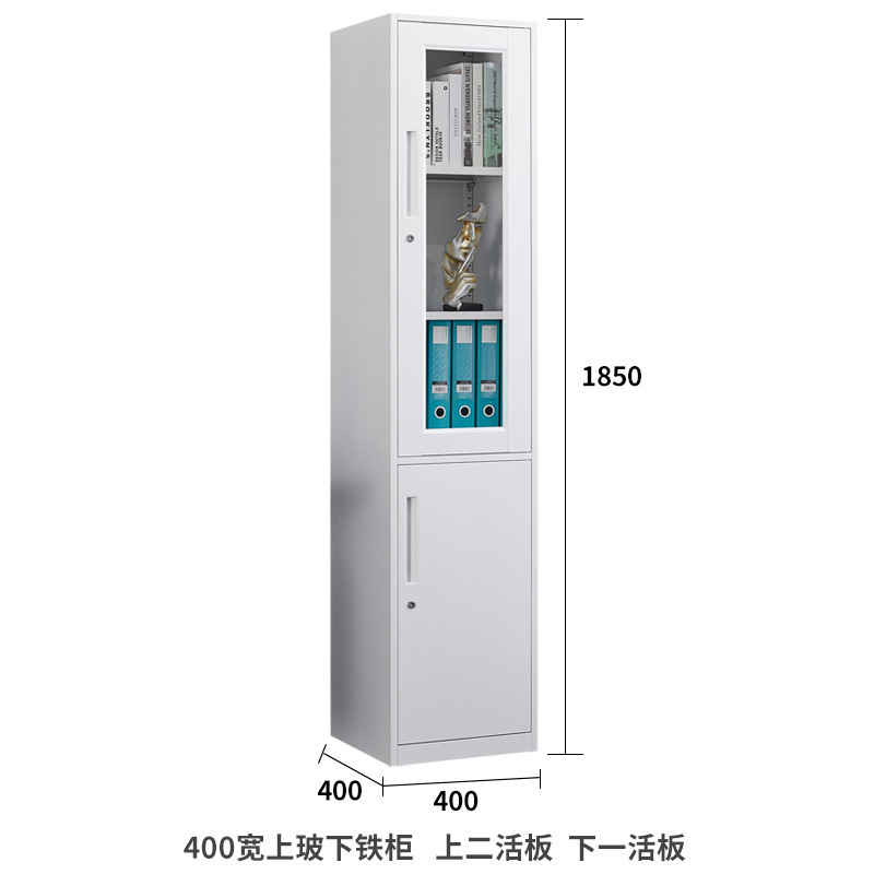단일 도어 사무실 파일 캐비닛 40cm 와이드 철 캐비닛 잠금 장치가있는 유리 사물함 홈 좁은 책장 작은 강철 캐비닛