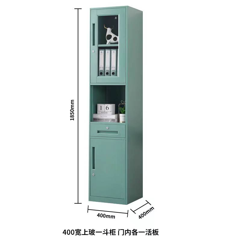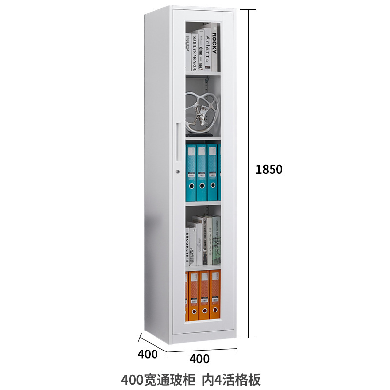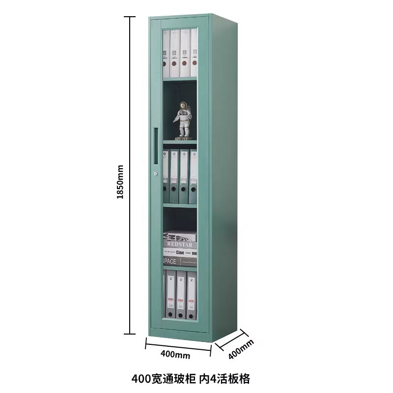 단일 도어 사무실 파일 캐비닛 40cm 와이드 철 캐비닛 잠금 장치가있는 유리 사물함 홈 좁은 책장 작은 강철 캐비닛스토어 가기