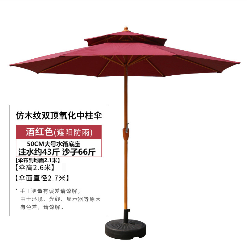 • 2.7m 버건디 더블탑 알루미늄 합금 센터 컬럼 우산✦♜