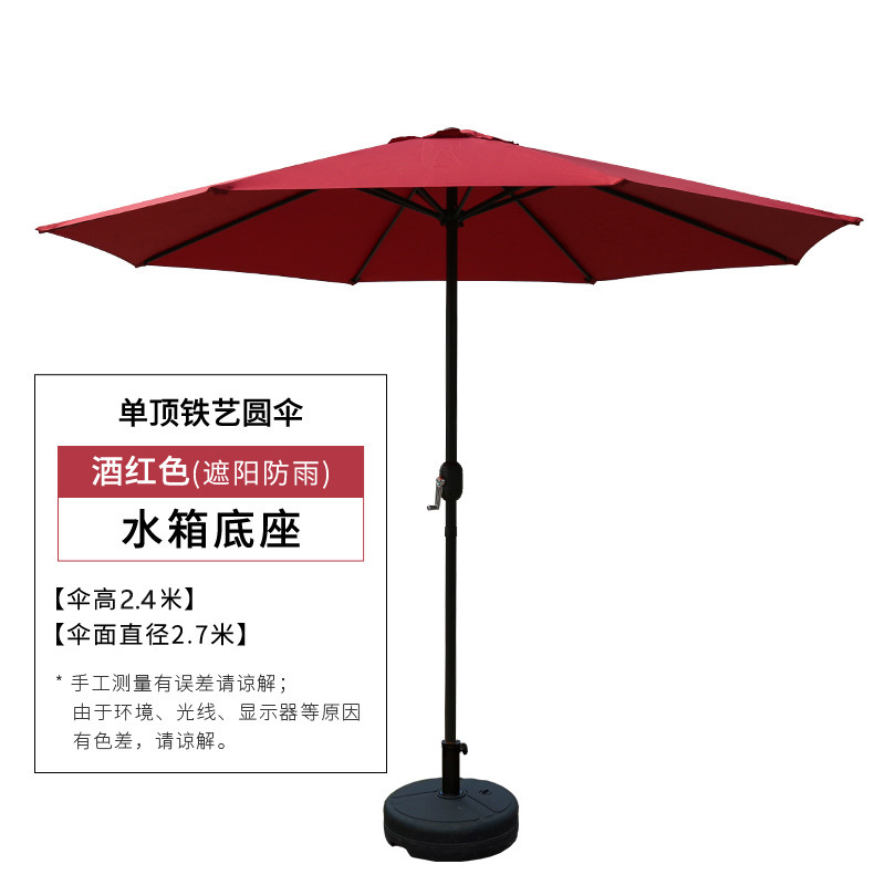 • 2.7m 수동 와인색 중앙 기둥 우산 + 받침대 ✦♜