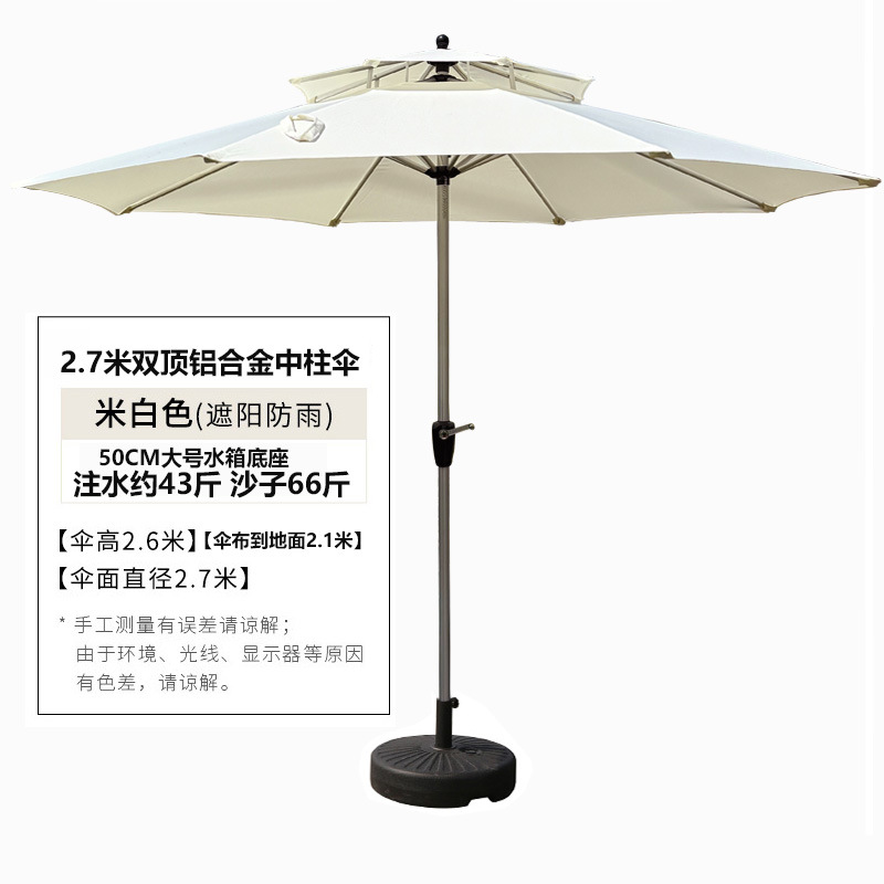 • 2.7미터 미색 이중 지붕 알루미늄 합금 중앙 기둥 우산 ✦♜