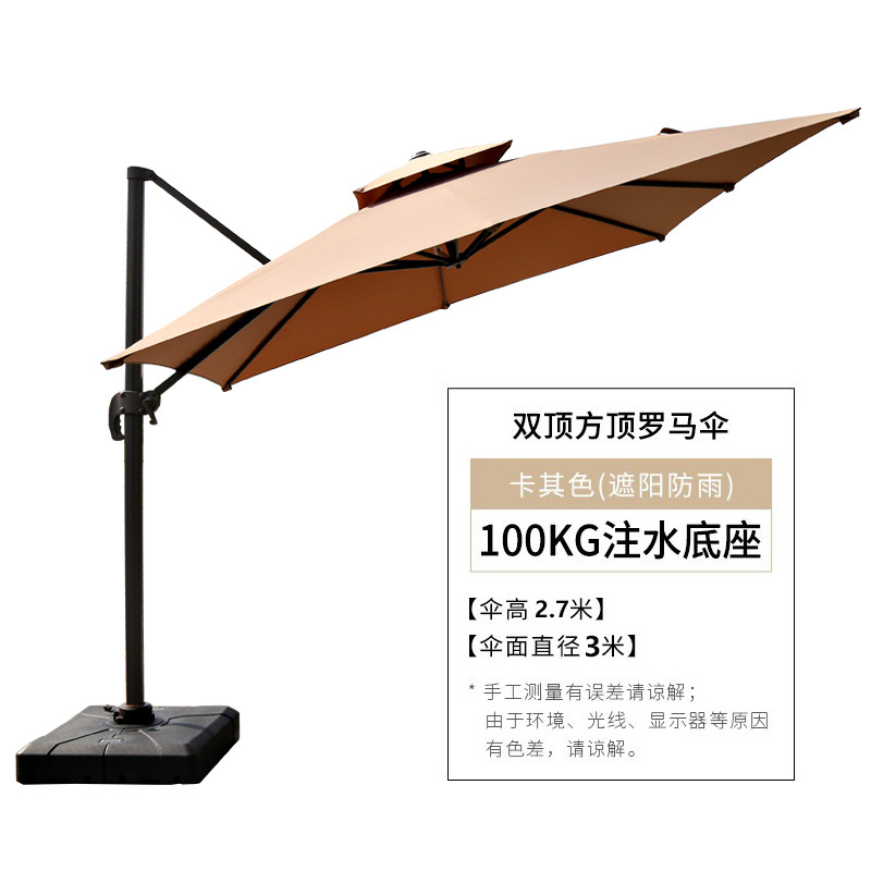 • 3m 카키색 사각 더블탑 로마우산 + 베이스 ✦♜