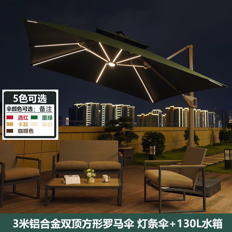 • 3m 태양광 LED 로마 파라솔 + 130L 물탱크 ✦♜