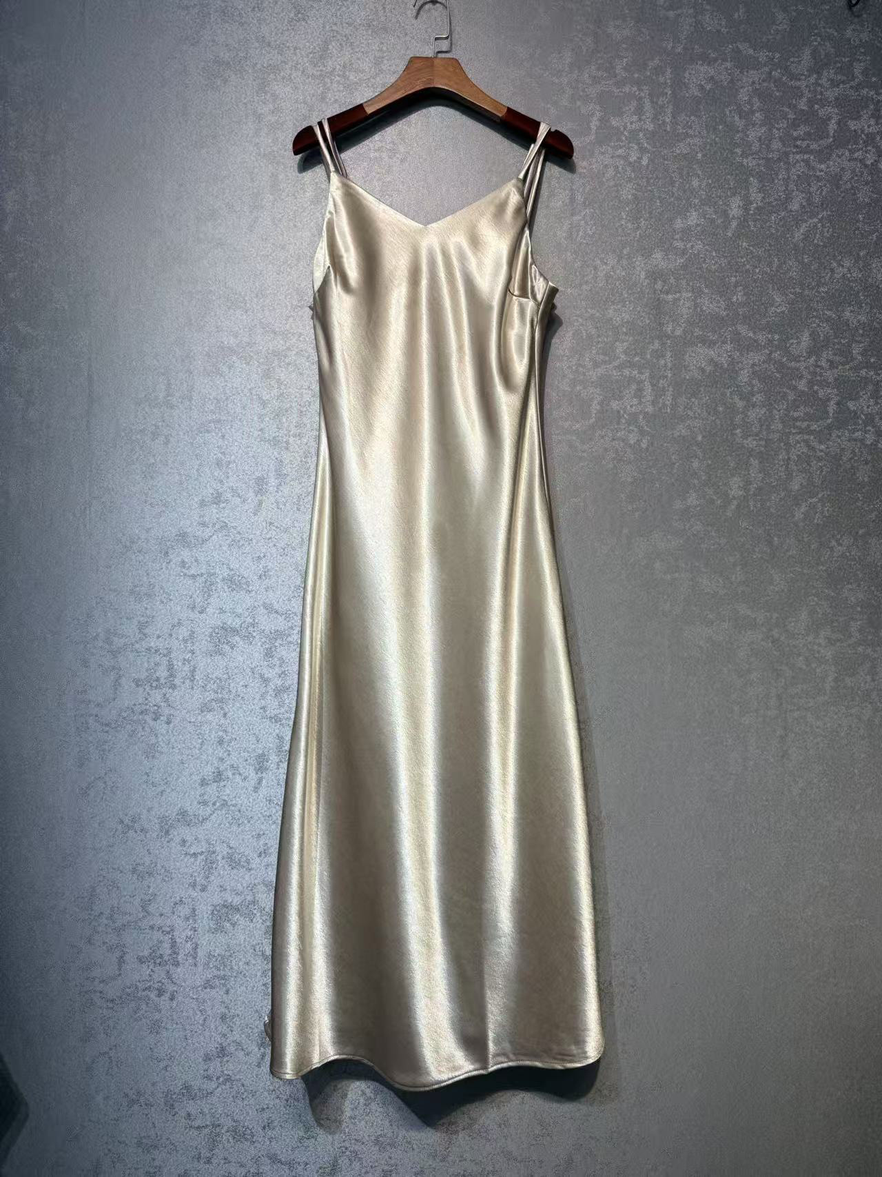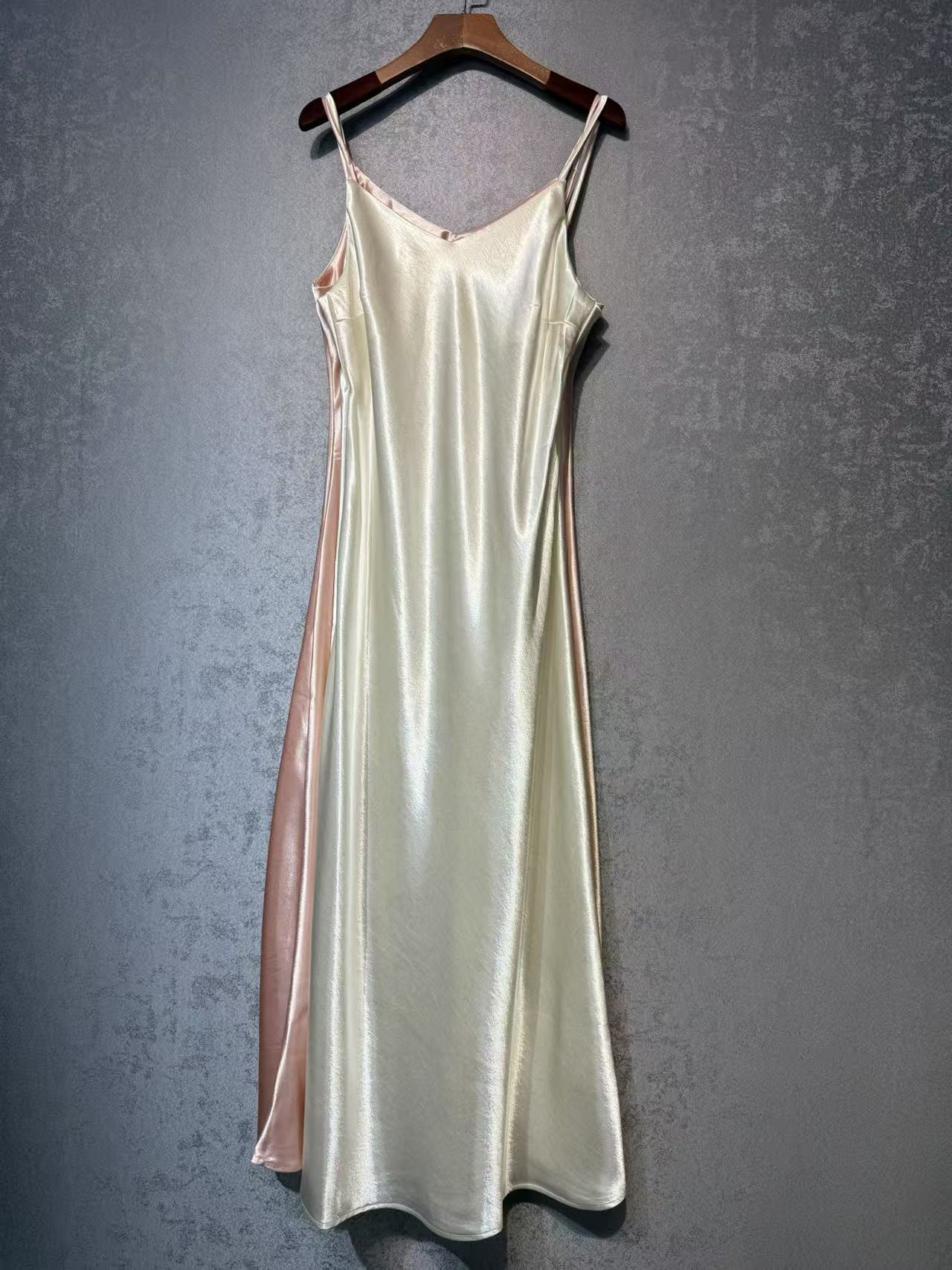 여성을위한 새로운 중국 스타일 실크 아세테이트 서스펜더 드레스 2025 봄, 여름 새로운 패션 다목적 롱 스커트 스커트